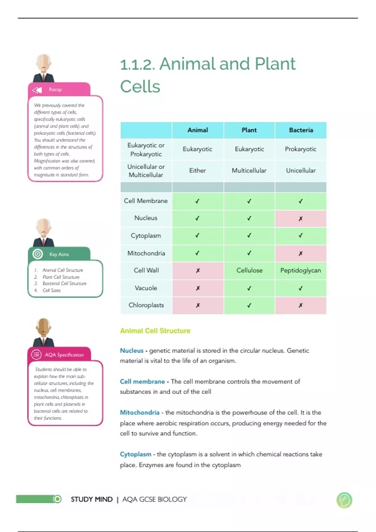 1. Animal Cell Structure Cell Wall ✗ Cellulose Peptidoglycan