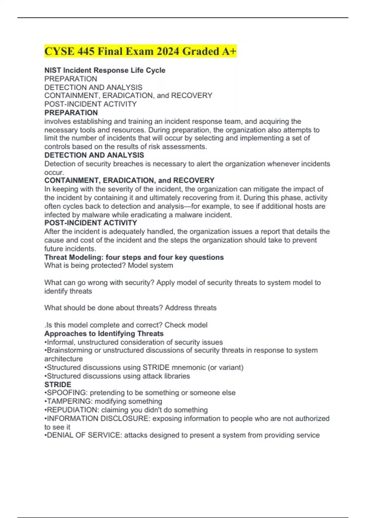 •Brainstorming or unstructured discussions of security threats in response to system