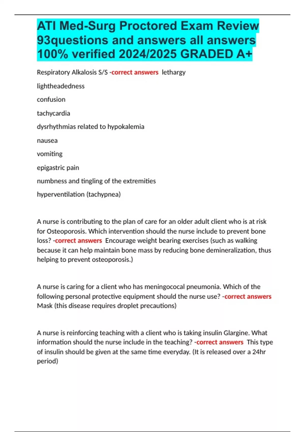 ATI Med-Surg Proctored Exam Review questions and answers all answers 100% verified 2024/2025 GRADED A+