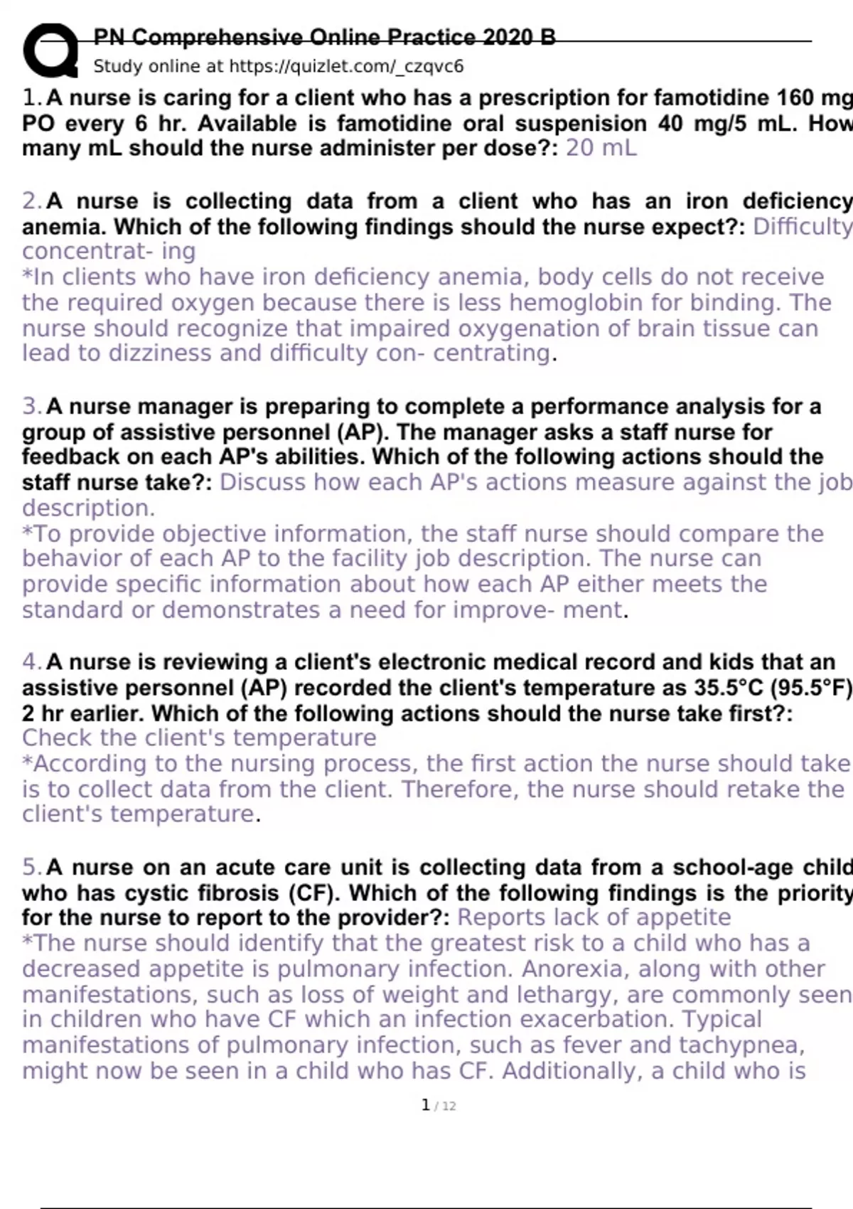 PN comprehensive online practice 2020 B