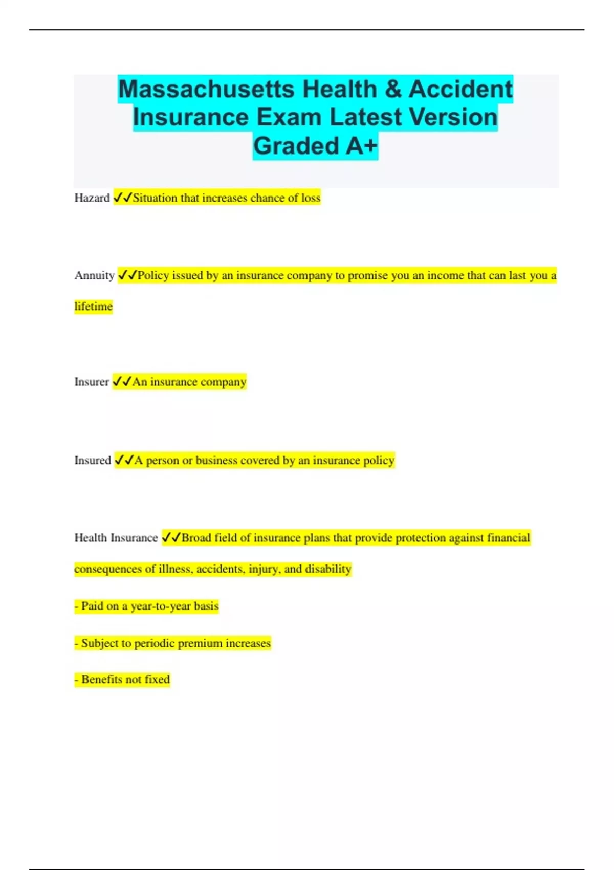Massachusetts Health & Accident Insurance Exam Latest Version Graded A+