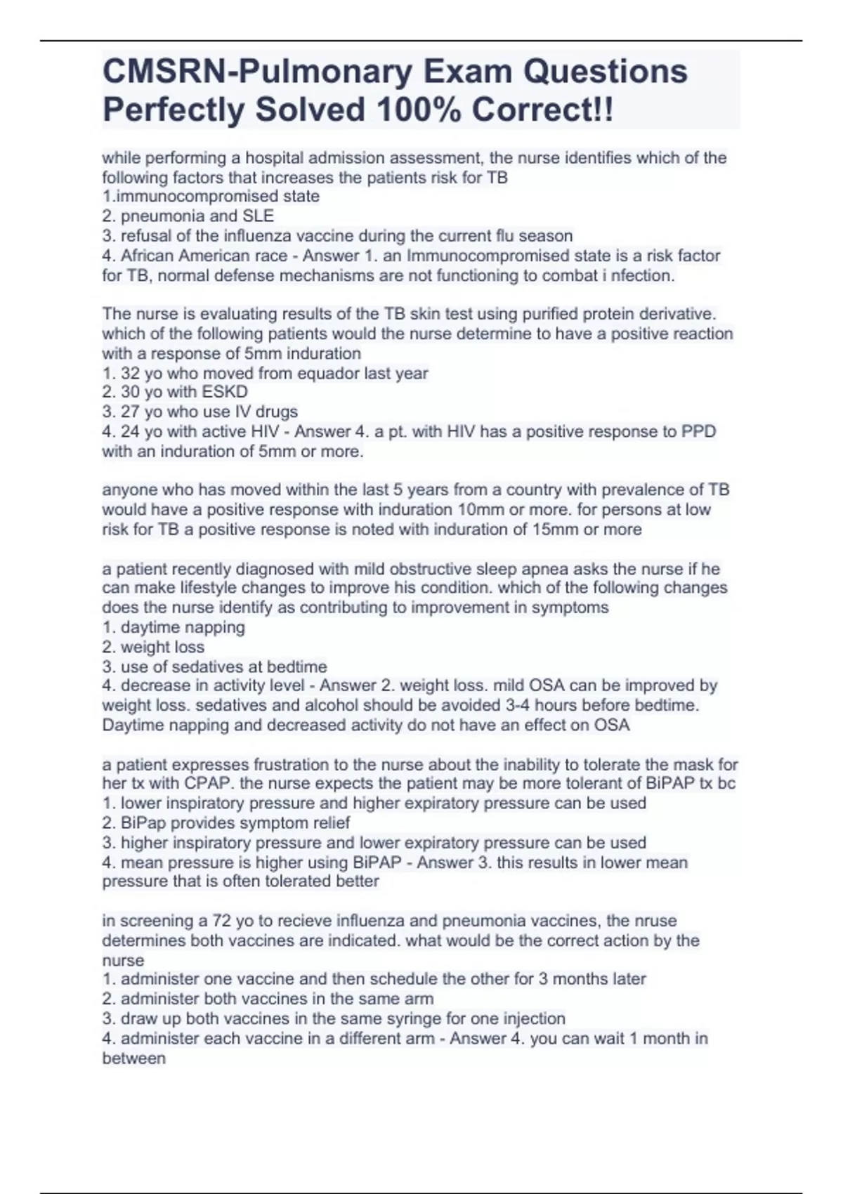 cmsrn pulmonary exam questions perfectly solved 10