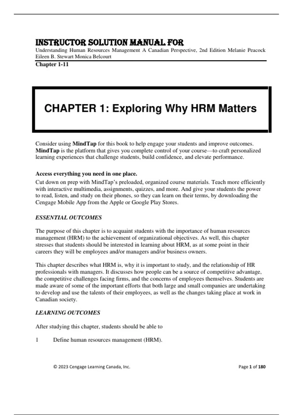 Instructor Solution Manual For Understanding Human Resources Management A Canadian Perspective, 2nd Edition Melanie PeacockEileen B. StewartMonica Belcourt Chapter(1-11)
