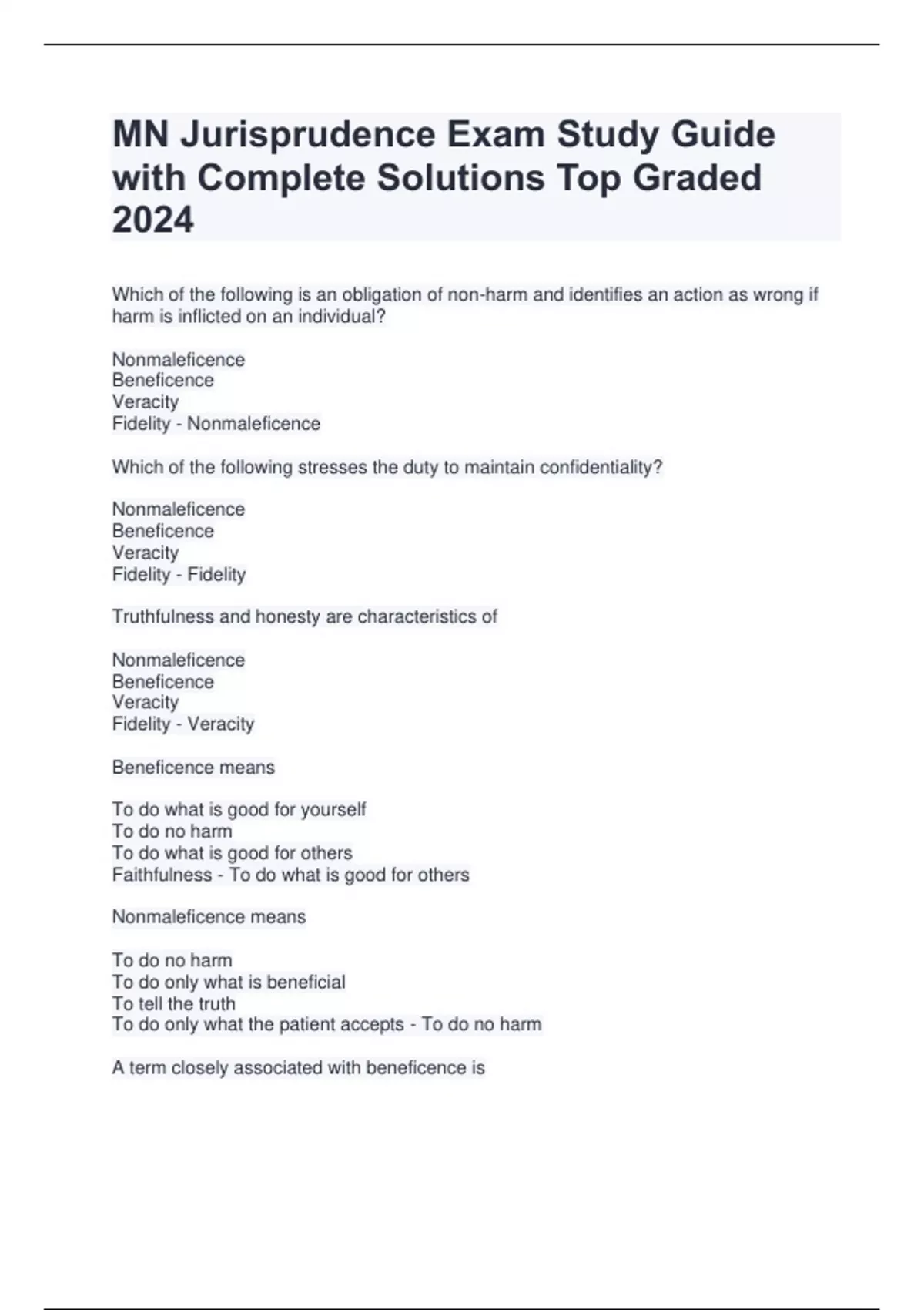 MN Jurisprudence Exam Study Guide with Complete Solutions Top Graded 2024