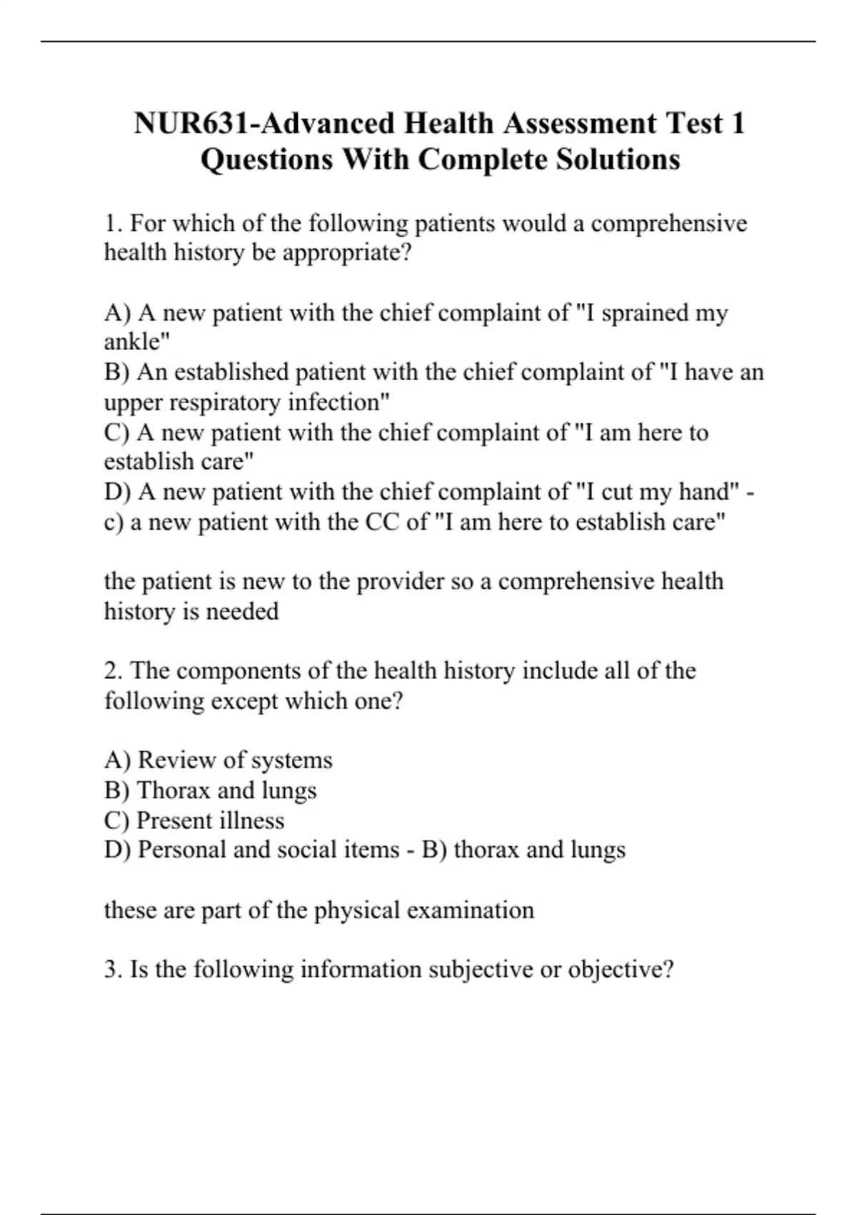 NUR631-Advanced Health Assessment Test 1 Questions With Complete Solutions