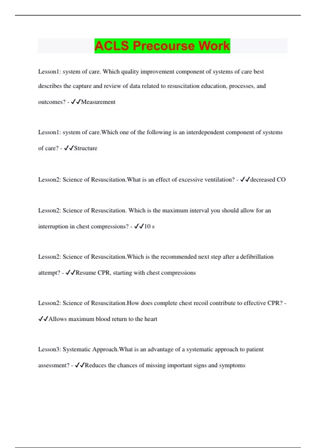 ACLS Precourse Work| Questions with 100% Correct Answers | Latest Update 2024 | Verified