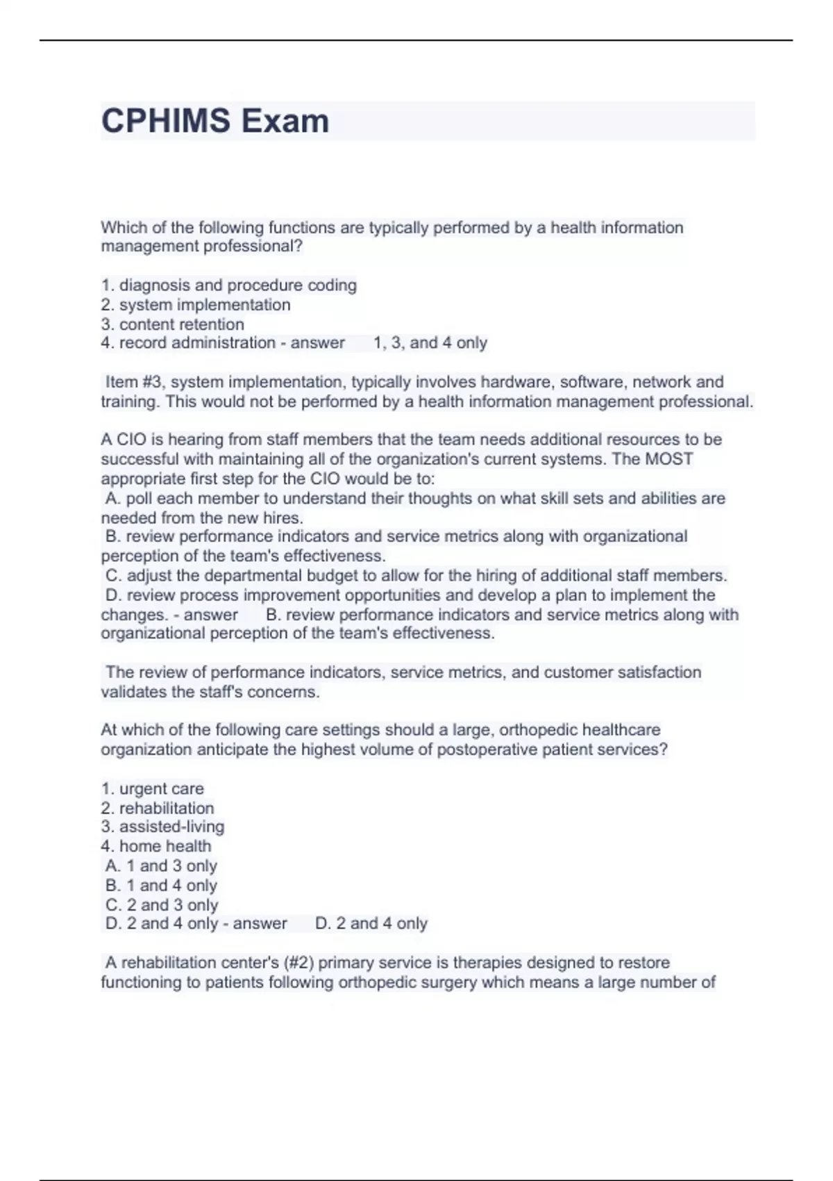 Exam of 31 pages for the course Cphims at Cphims (CPHIMS Exam)