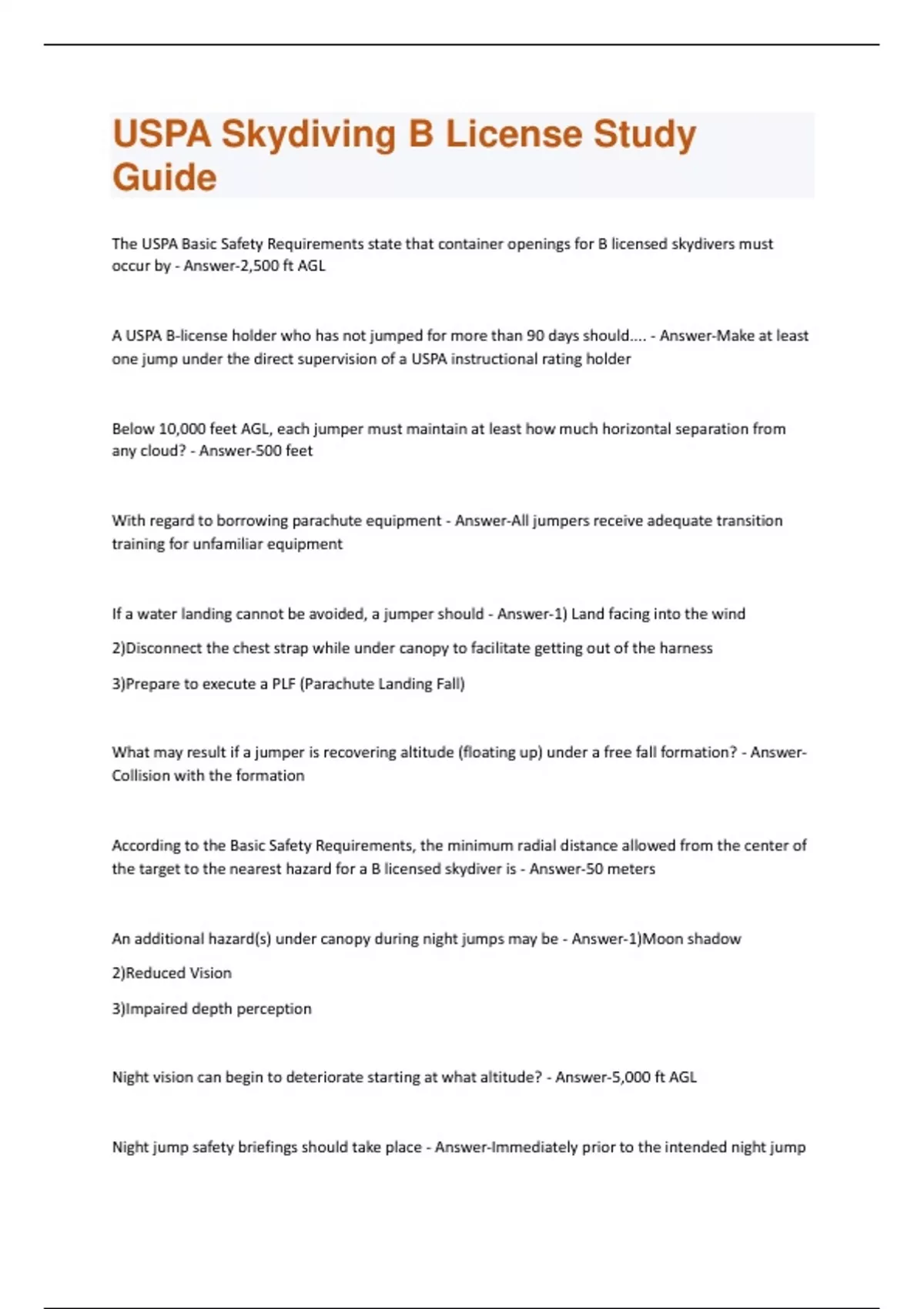 USPA Skydiving B License Study Guide Graded A+