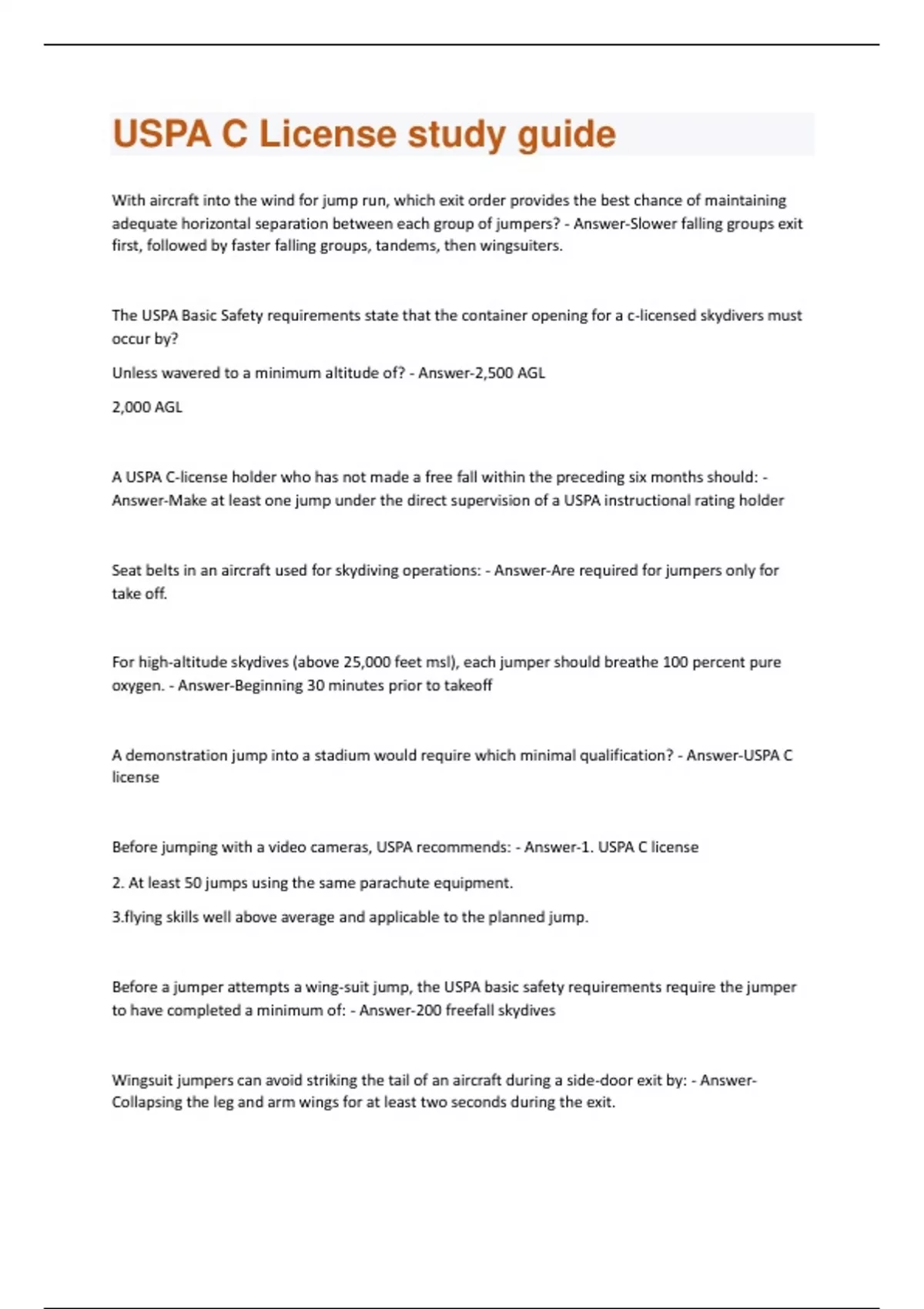 USPA C License study guide Questions and Answers(A+ Solution guide)