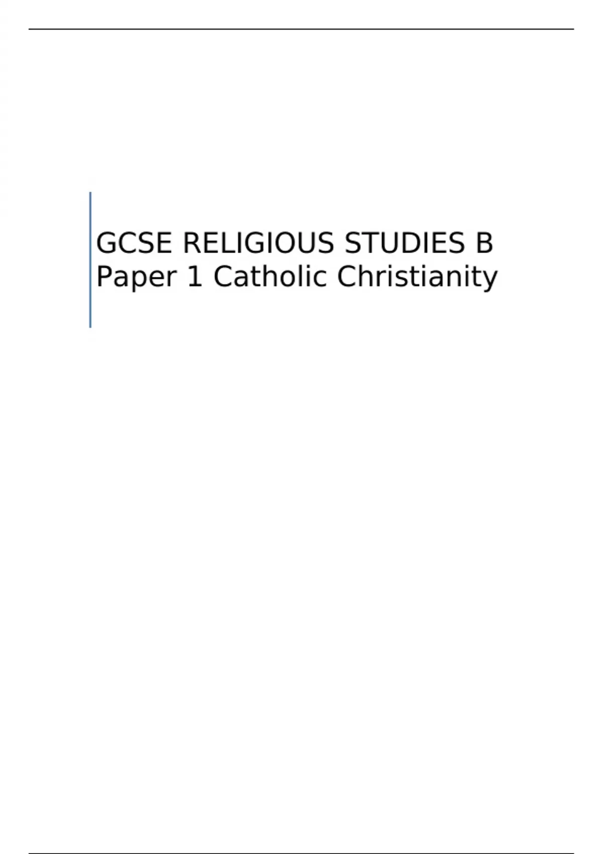 GCSE RELIGIOUS STUDIES B Paper 1 Catholic Christianity