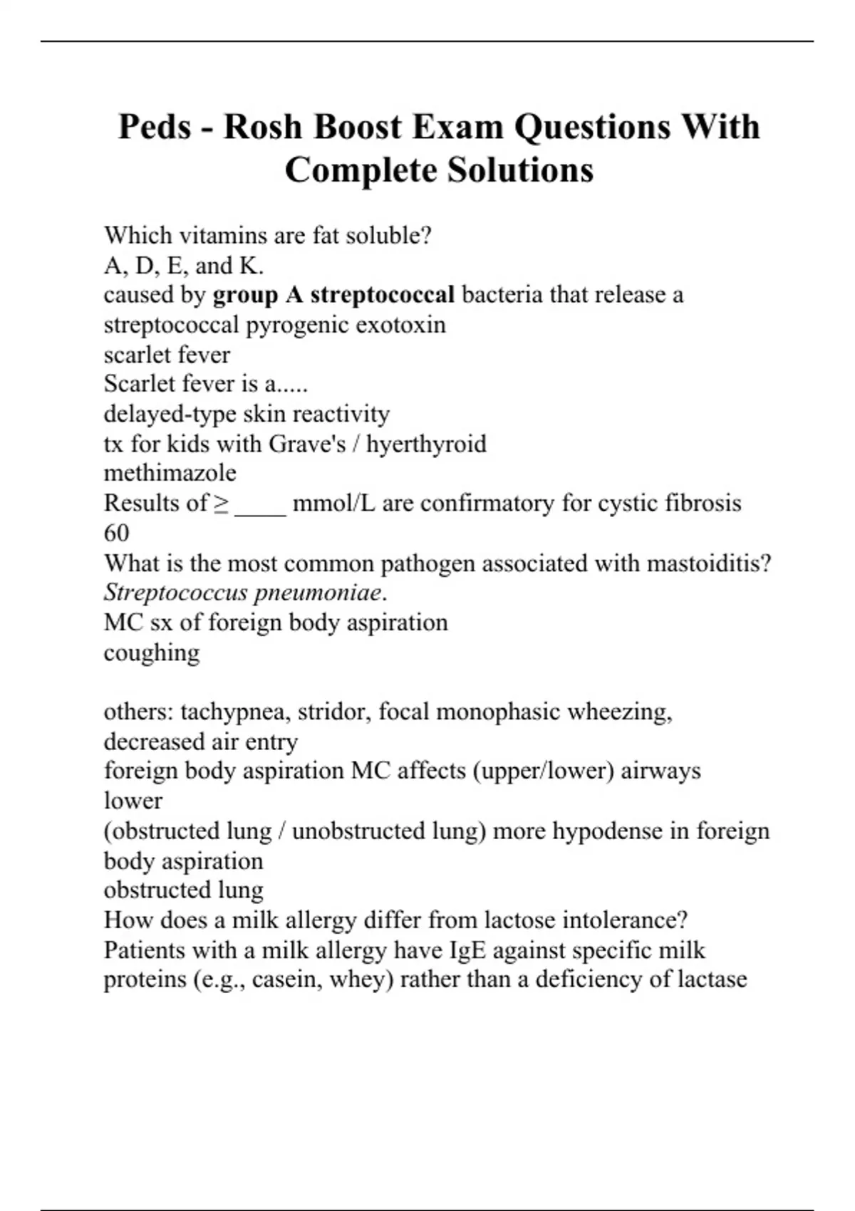peds rosh boost exam questions with complete sol