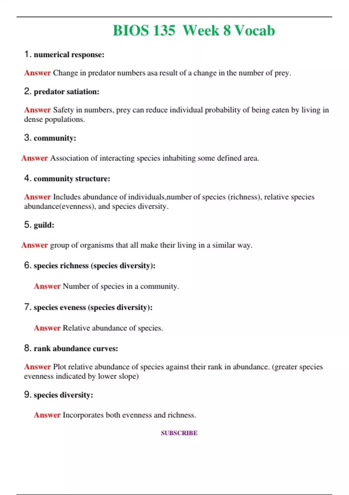 BIOS 135 Week 8 Vocab (Latest 2024 / 2025) Questions & Answers with rationales