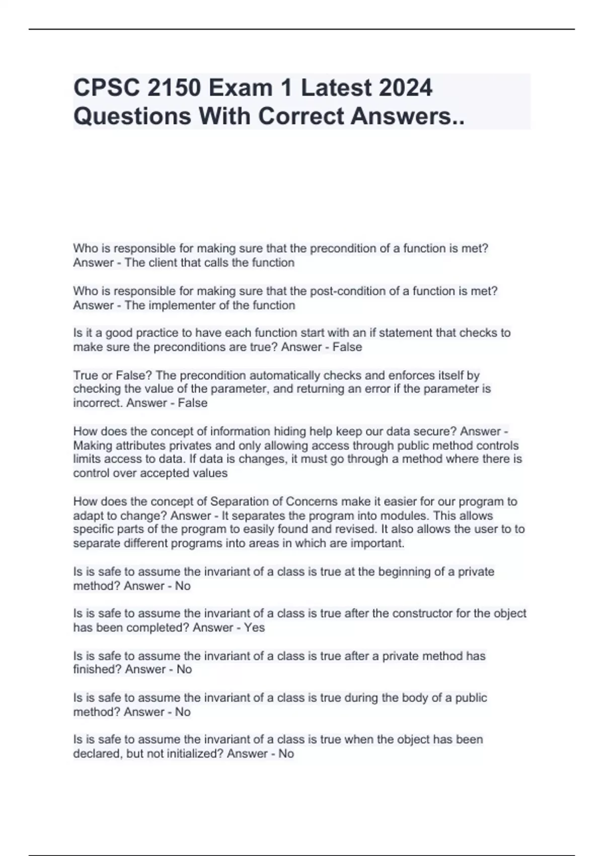 CPSC 2150 Exam 1 Latest 2024 Questions With Correct Answers..