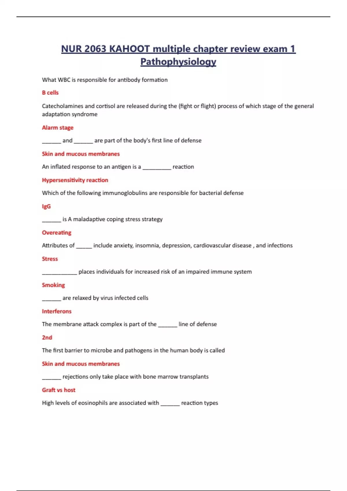 - NUR 2063 KAHOOT multiple chapter