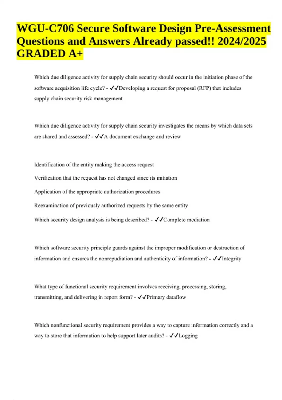 WGU-C706 Secure Software Design Pre-Assessment Questions and Answers 2024/2025 (GRADED A+)