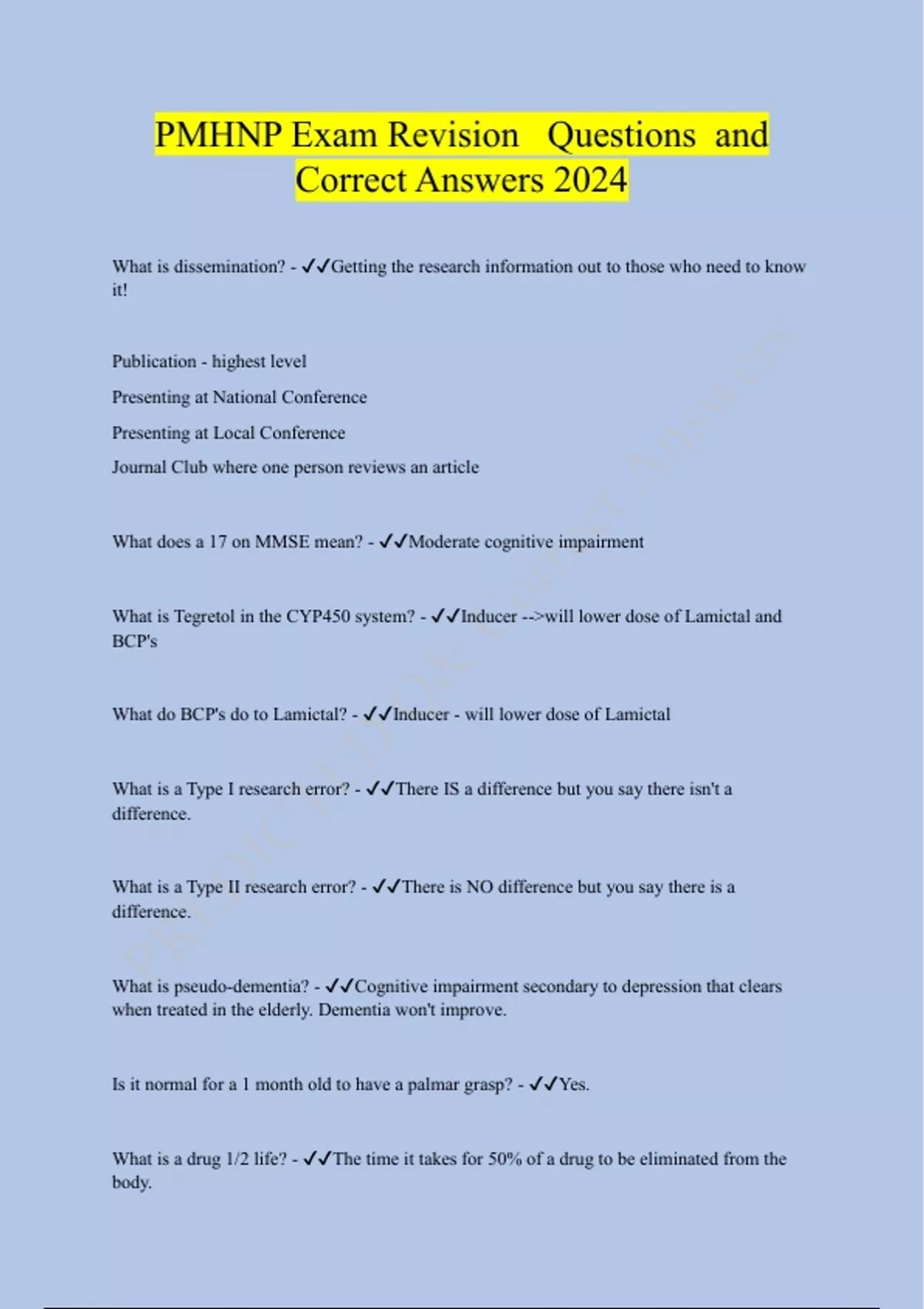PMHNP Exam Revision Questions and Correct Answers 2024
