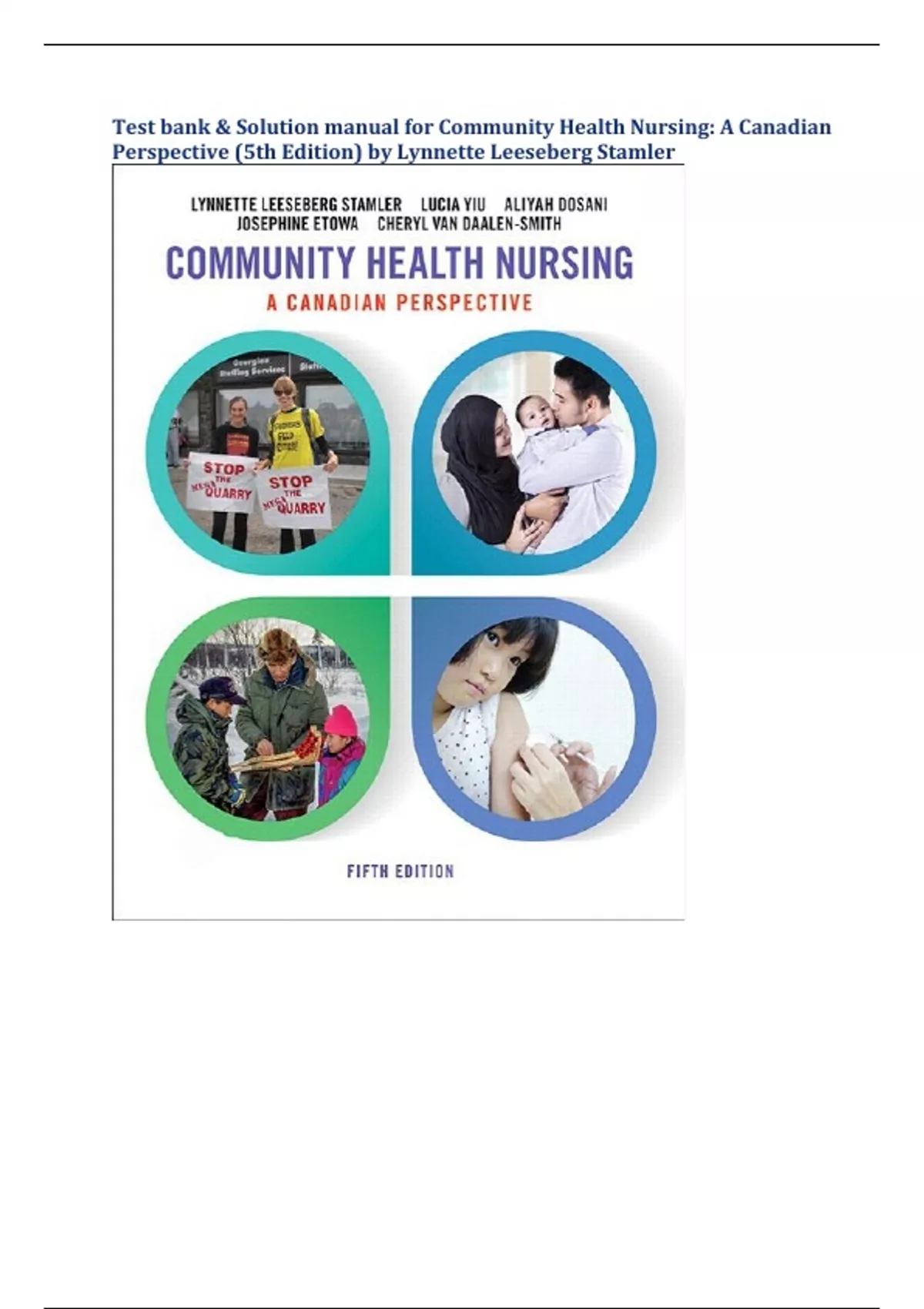 Test bank & Solution manual for Community Health Nursing: A Canadian Perspective (5th Edition) by Lynnette Leeseberg Stamler