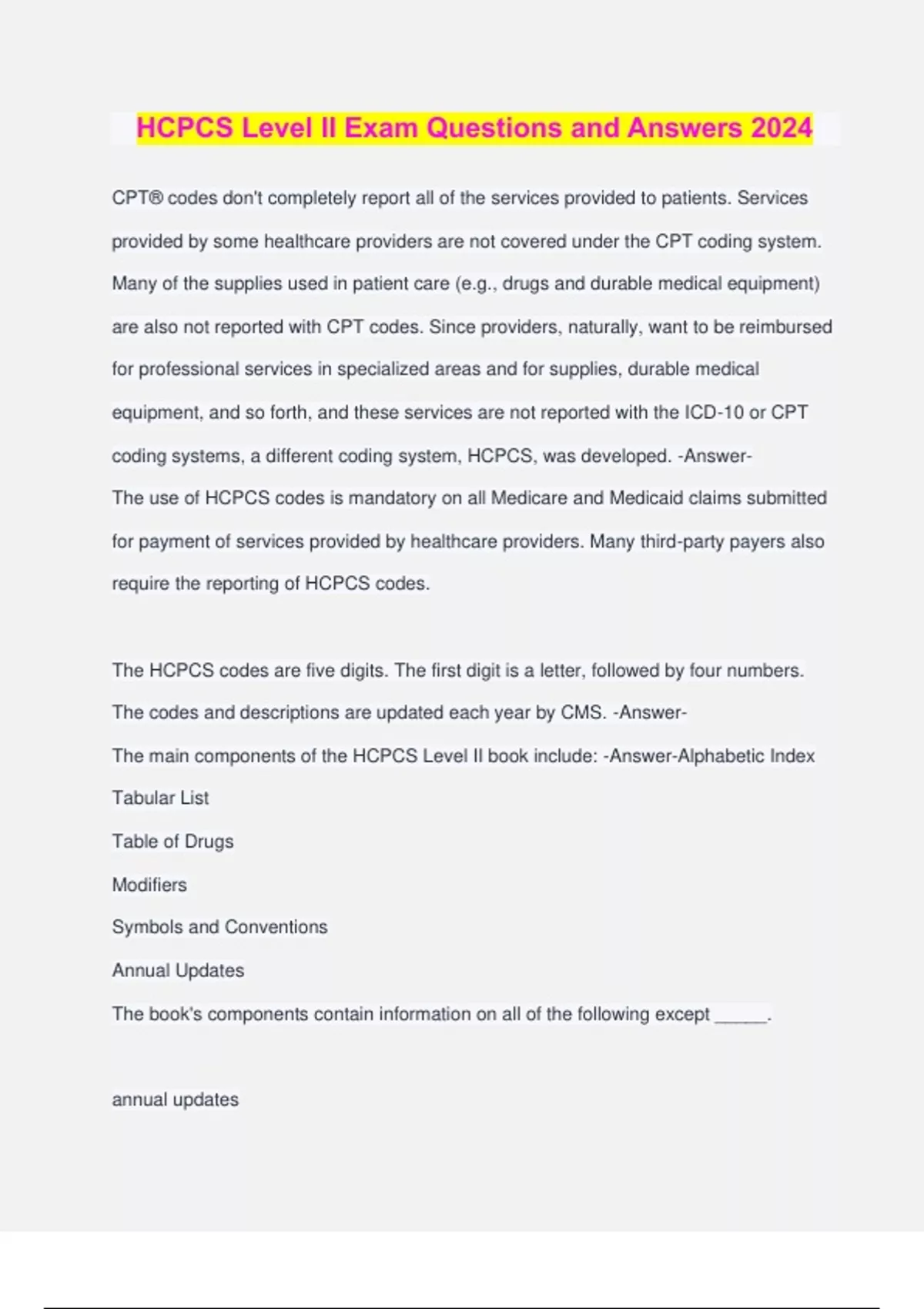 HCPCS Level II Exam Questions and Answers 2024