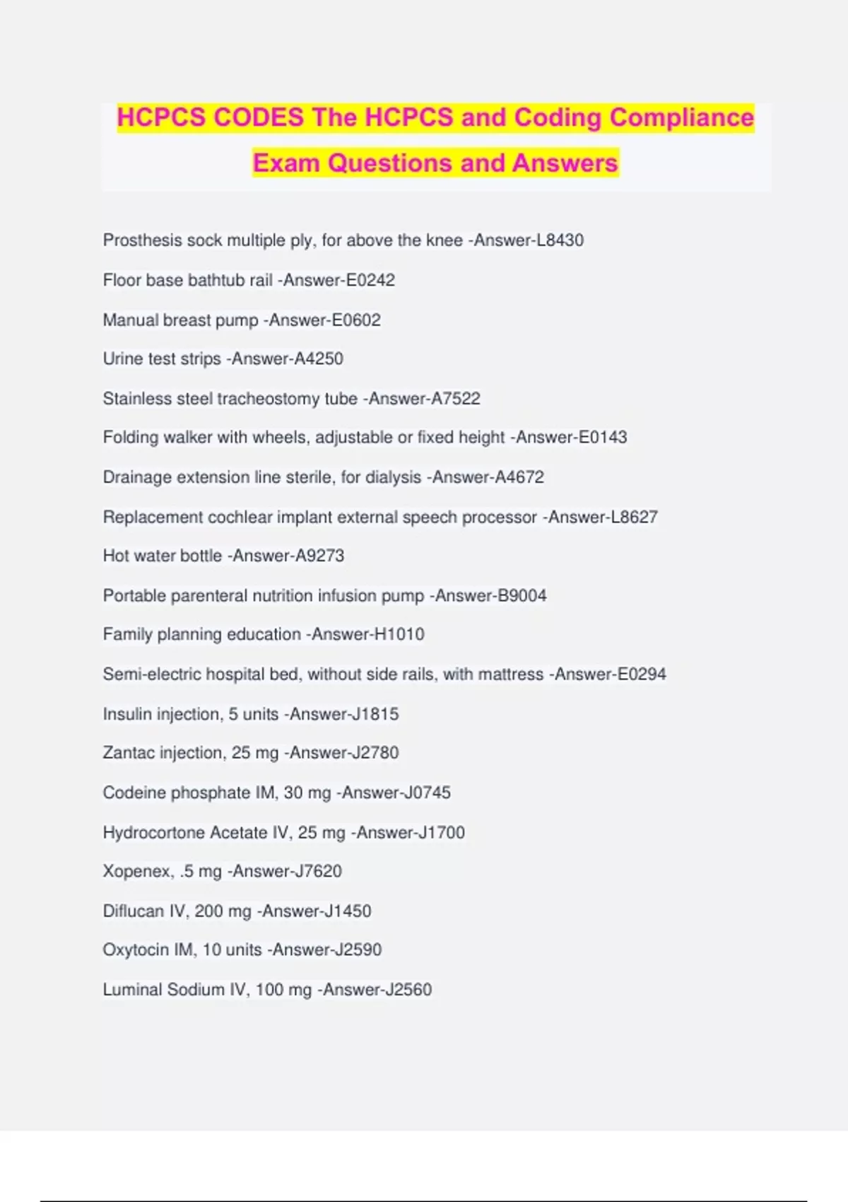 HCPCS CODES The HCPCS and Coding Compliance Exam Questions and Answers