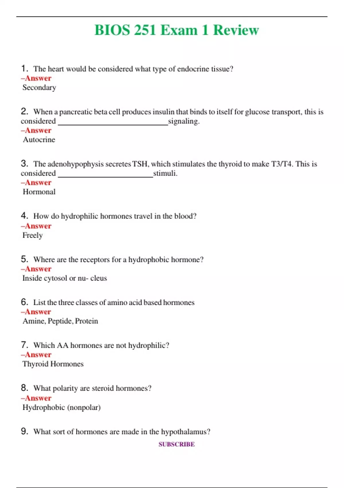 BIOS 251 Exam 1 Review (Latest 2024 / 2025) Questions & Answers with rationales