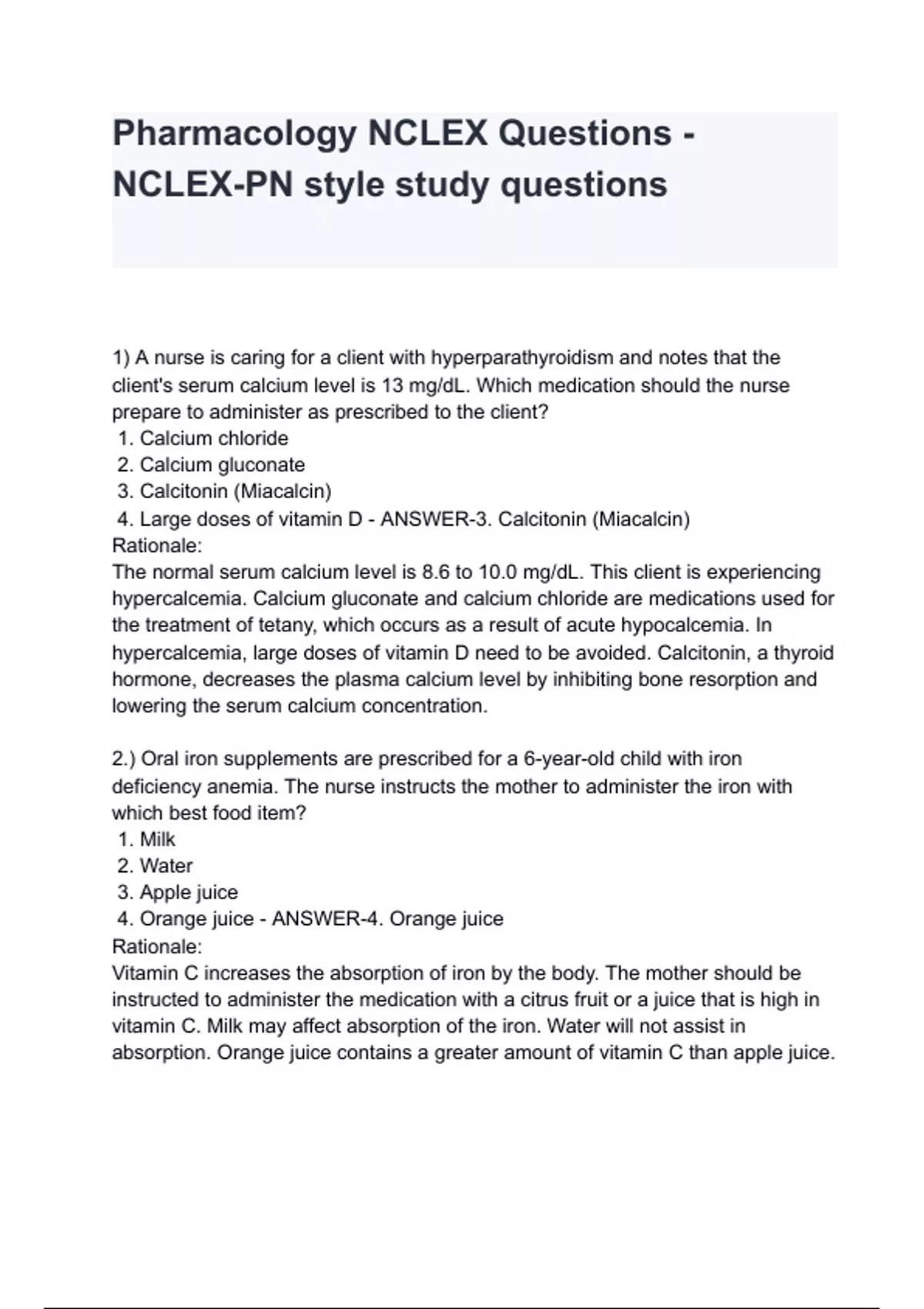 Pharmacology NCLEX Questions - NCLEX-PN style study questions and answers