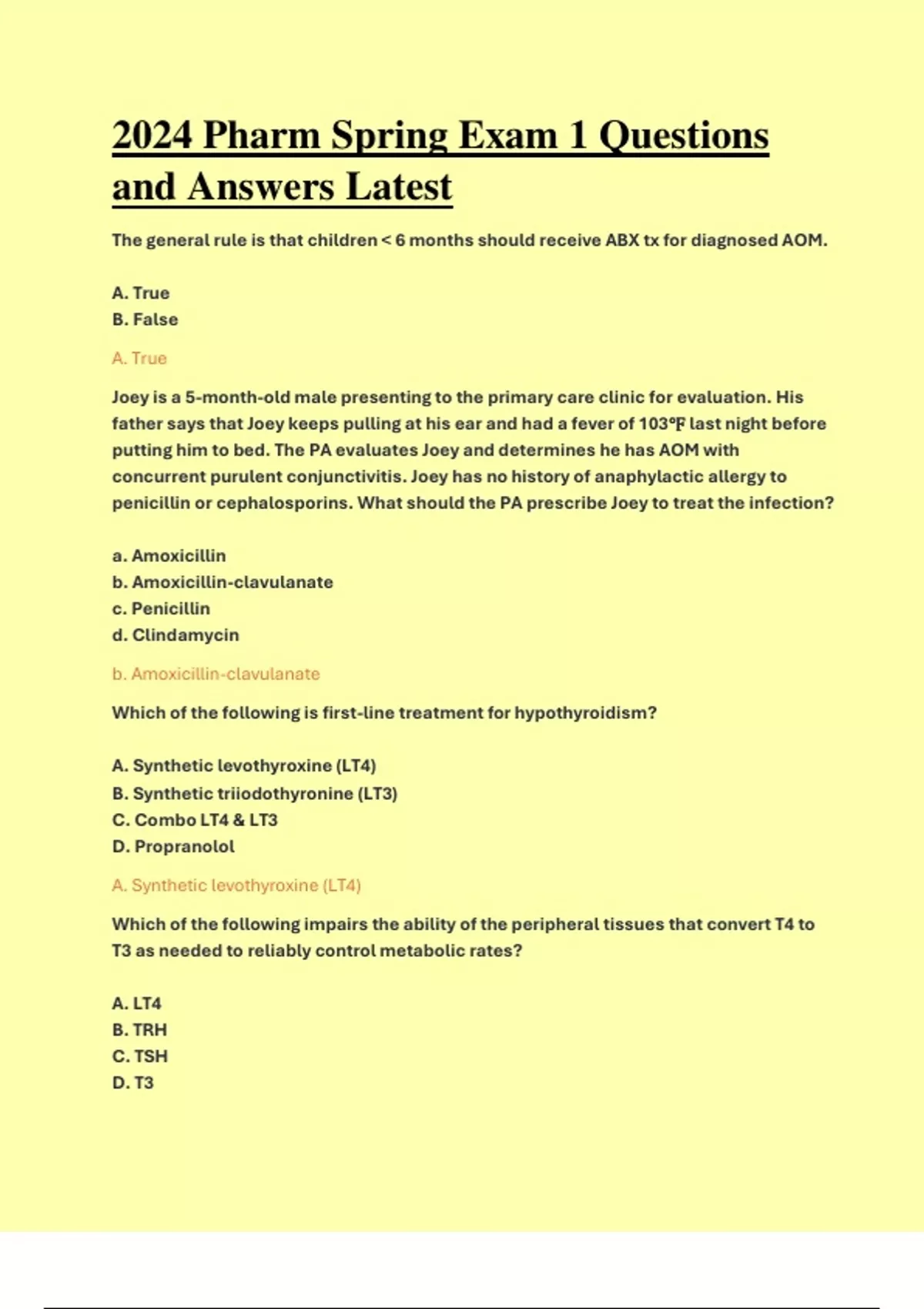 2024 Pharm Spring Exam 1 Questions and Answers Latest