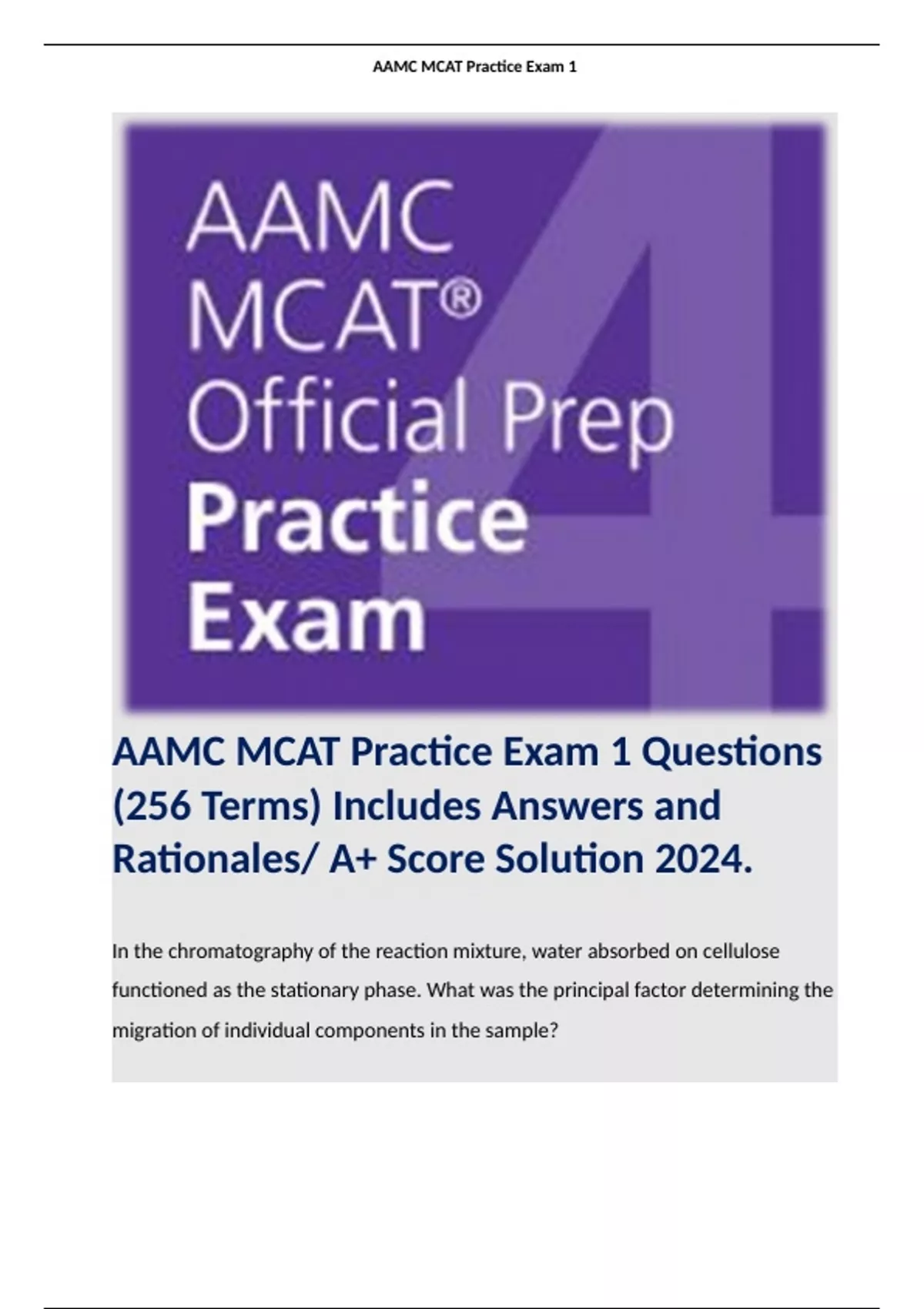 AAMC MCAT Practice Exam 1 Questions (256 Terms) Includes Answers and Rationales/ A+ Score Solution 2024.