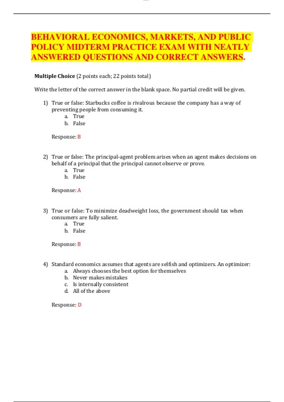 BEHAVIORAL ECONOMICS, MARKETS, AND PUBLIC POLICY MIDTERM PRACTICE EXAM WITH NEATLY ANSWERED QUESTIONS AND CORRECT ANSWERSBEHAVIORAL ECONOMICS, MARKETS, AND PUBLIC POLICY MIDTERM PRACTICE EXAM WITH NEATLY ANSWERED QUESTIONS AND CORRECT ANSWERSBEHAVIORAL ECONOMICS, MARKETS, AND PUBLIC POLICY MIDTERM PRACTICE EXAM WITH NEATLY ANSWERED QUESTIONS AND CORRECT ANSWERSBEHAVIORAL ECONOMICS, MARKETS, AND PUBLIC POLICY MIDTERM PRACTICE EXAM WITH NEATLY ANSWERED QUESTIONS AND CORRECT ANSWERSBEHAVIORAL ECONOMICS, MARKETS, AND PUBLIC POLICY MIDTERM PRACTICE EXAM WITH NEATLY ANSWERED QUESTIONS AND CORRECT ANSWERSBEHAVIORAL ECONOMICS, MARKETS, AND PUBLIC POLICY MIDTERM PRACTICE EXAM WITH NEATLY ANSWERED QUESTIONS AND CORRECT ANSWERSBEHAVIORAL ECONOMICS, MARKETS, AND PUBLIC POLICY MIDTERM PRACTICE EXAM WITH NEATLY ANSWERED QUESTIONS AND CORRECT ANSWERS