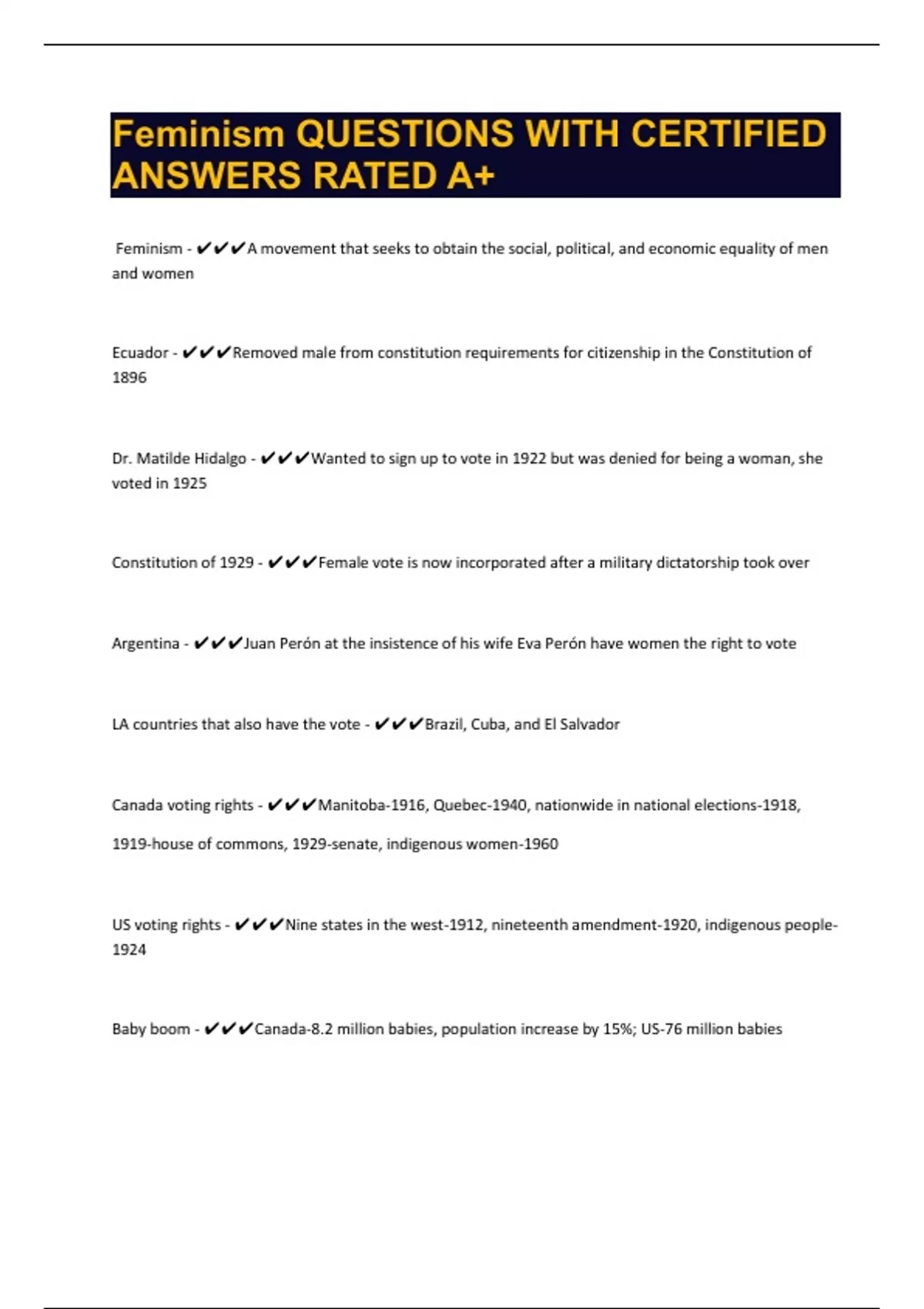 Feminism - ✔✔✔A movement that seeks to obtain the social, political, and economic equality of men