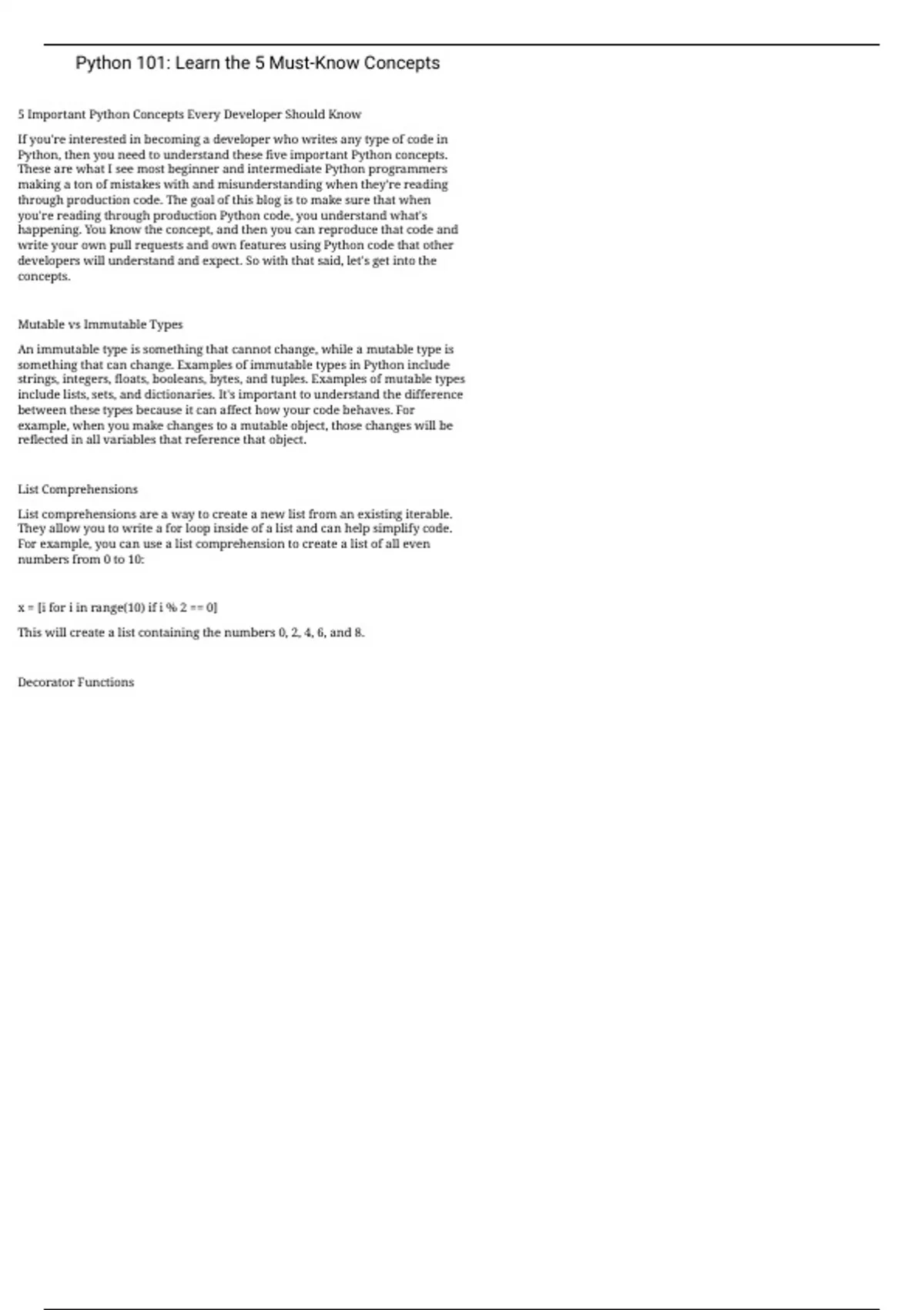 If you're interested in becoming a developer who writes any type of code in Python, then you need to understand these five important Python concepts.