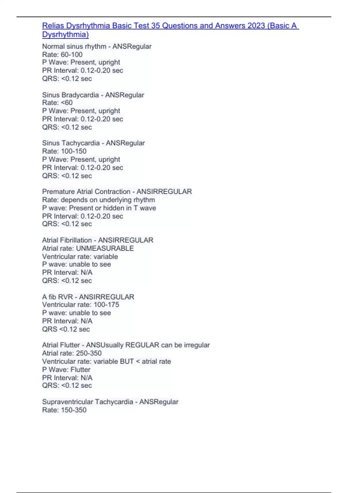 , Relias Dysrhythmia Basic Test 35 Questions and Answers 2023 (Basic A