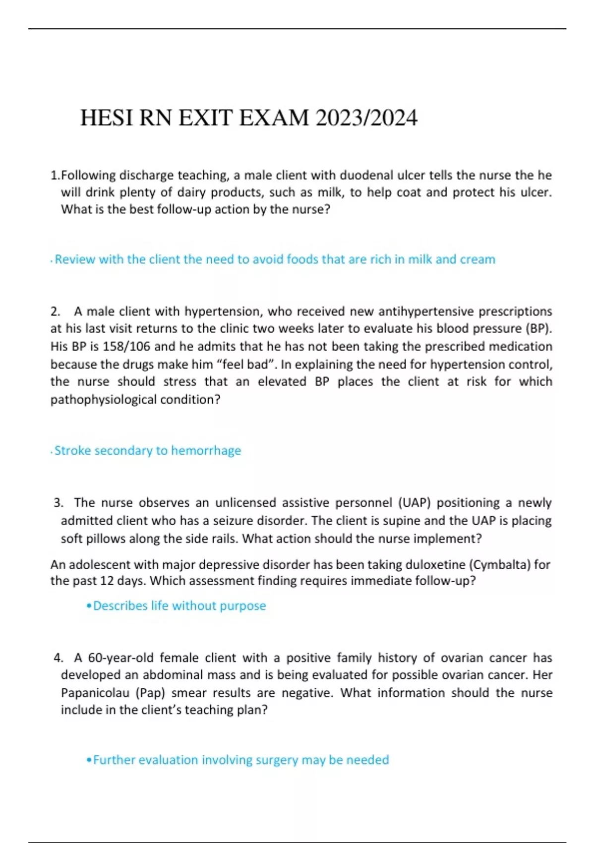 HESI RN EXIT EXAM 2023/2024 HESI RN EXIT EXAM 2023/2024 HESI RN EXIT EXAM 2023/2024