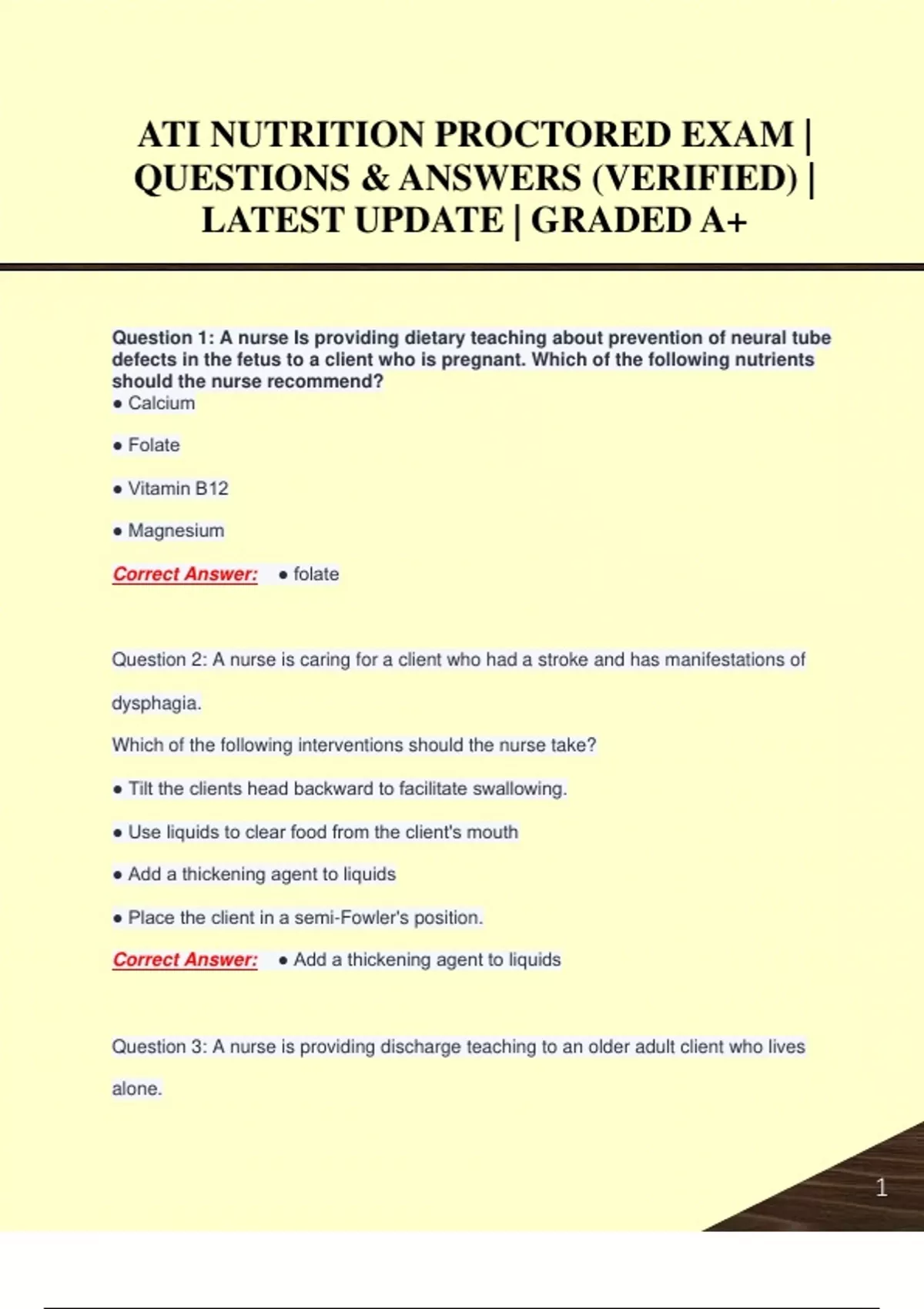ATI NUTRITION PROCTORED EXAM | QUESTIONS & ANSWERS (VERIFIED) | LATEST UPDATE | GRADED A+ATI NUTRITION PROCTORED EXAM | QUESTIONS & ANSWERS (VERIFIED) | LATEST UPDATE | GRADED A+