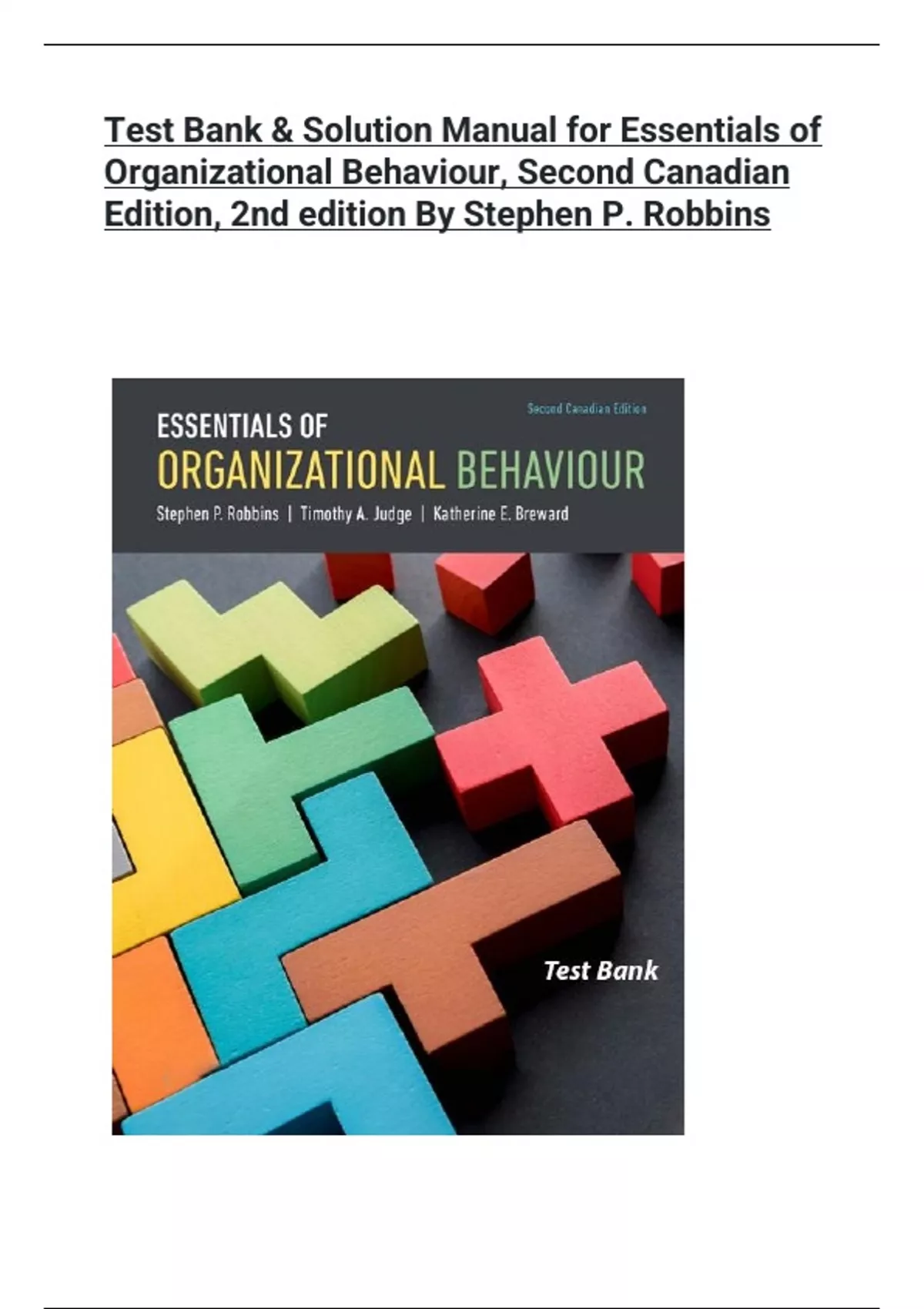 est Bank & Solution Manual for Essentials of Organizational Behaviour, Second Canadian Edition, 2nd edition By Stephen P. Robbins