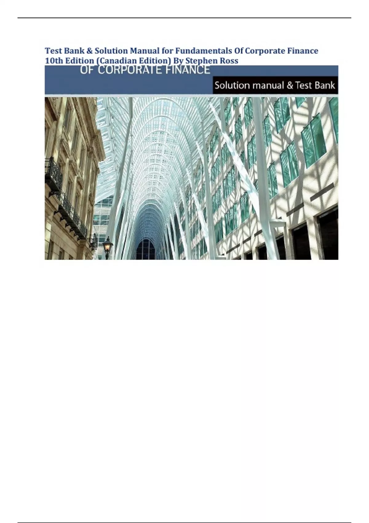 Test Bank & Solution Manual for Fundamentals Of Corporate Finance 10th Edition (Canadian Edition) By Stephen Ros