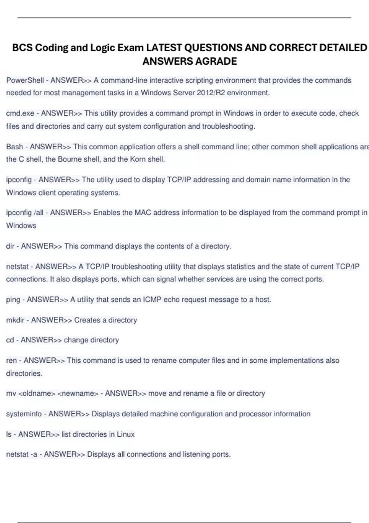 BCS Coding and Logic Exam LATEST QUESTIONS AND CORRECT DETAILED ANSWERS AGRADE