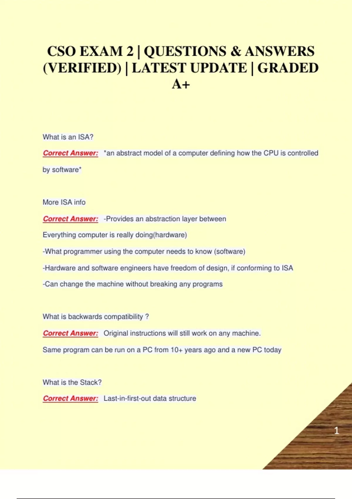 CSO EXAM 2 | QUESTIONS & ANSWERS (VERIFIED) | LATEST UPDATE | GRADED A+
