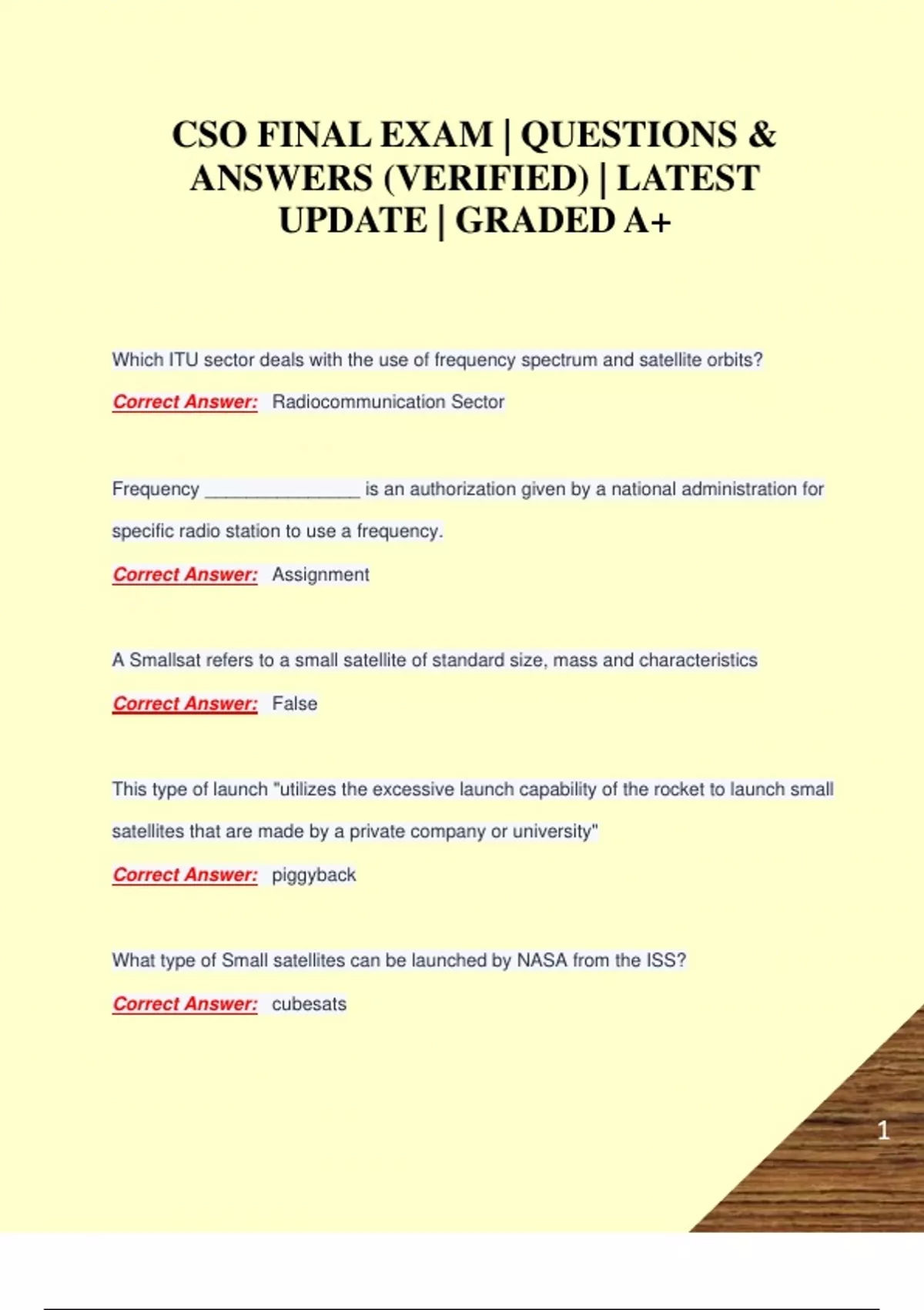 CSO FINAL EXAM | QUESTIONS & ANSWERS (VERIFIED) | LATEST UPDATE | GRADED A+