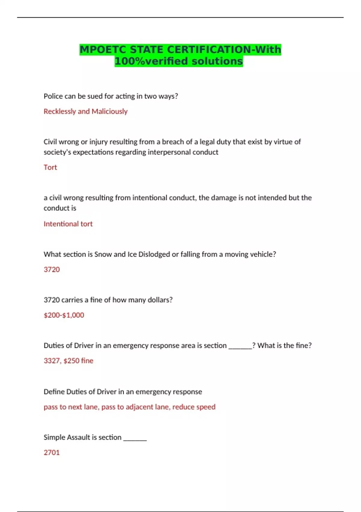 MPOETC STATE CERTIFICATION-With 100%verified solutions