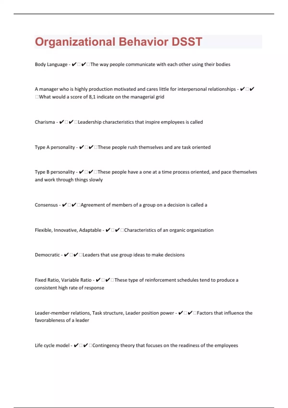 - Organizational Behavior DSST
