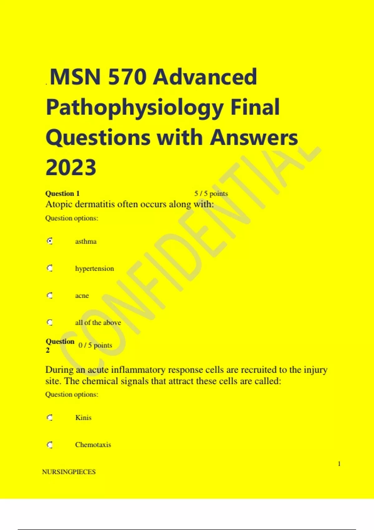 MSN 570 Advanced Pathophysiology Final Questions with Answers.