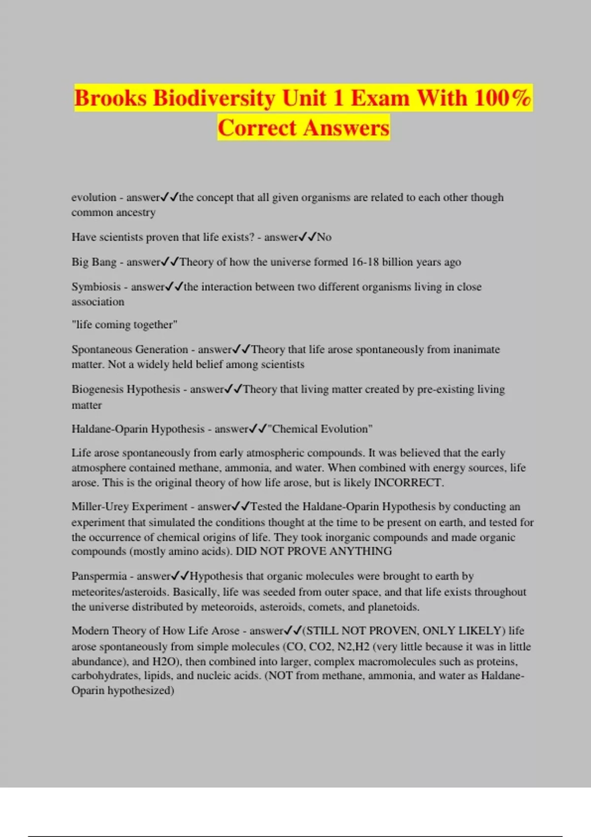 Brooks Biodiversity Unit 1 Exam With 100% Correct Answers