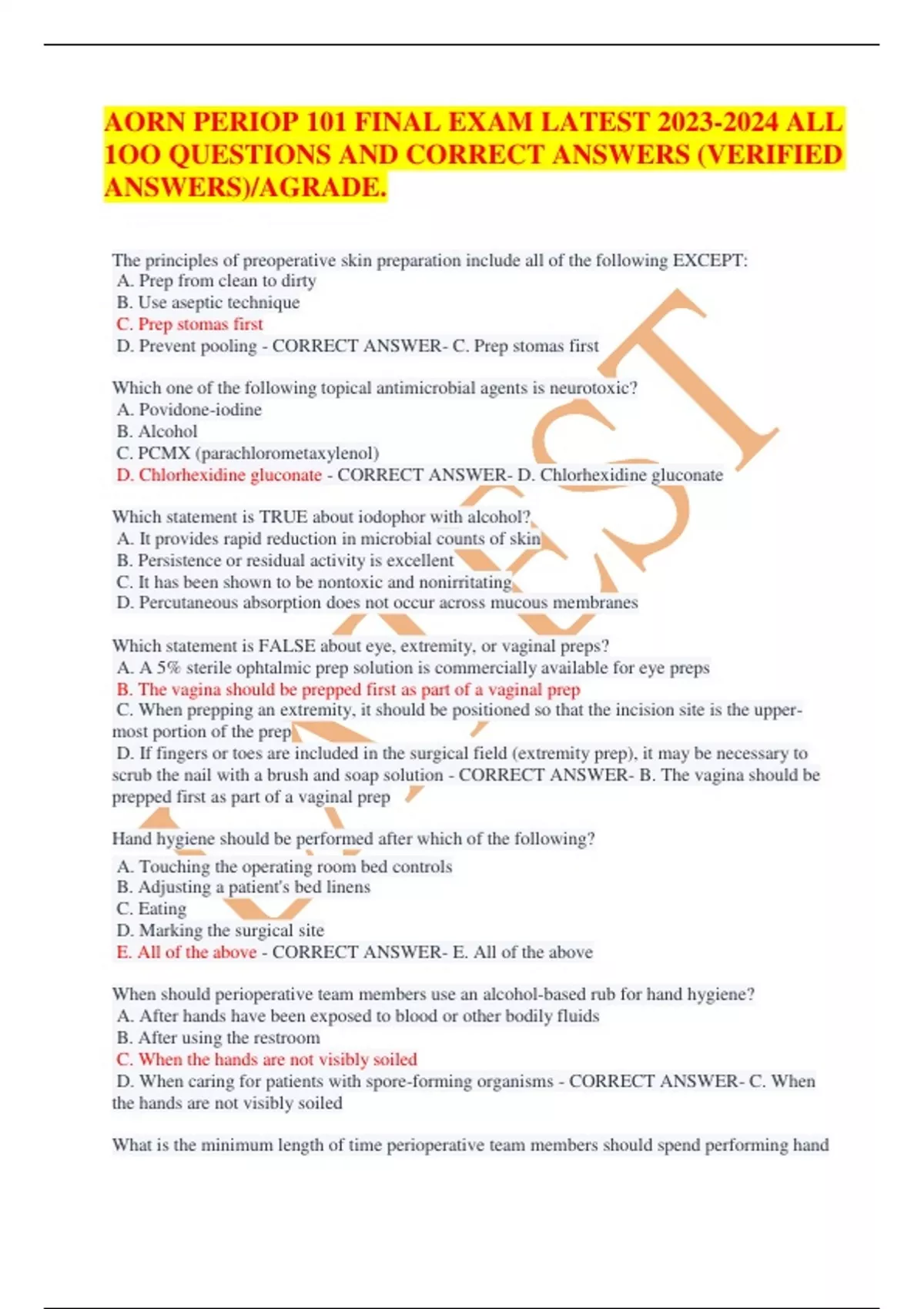 AORN PERIOP 101 FINAL EXAM LATEST ALL 1OO QUESTIONS AND CORRECT ANSWERS (VERIFIED ANSWERS)/AGRADE