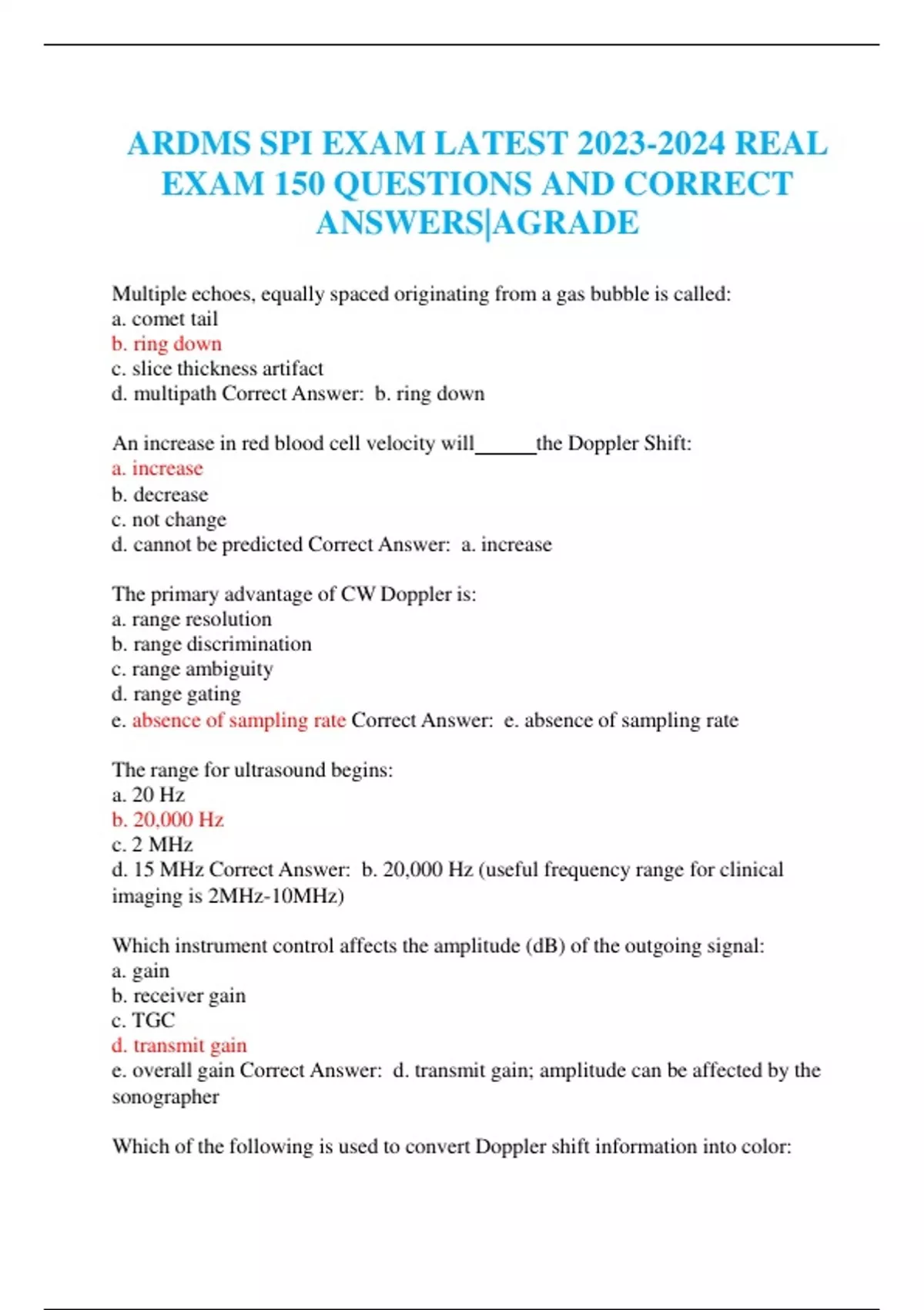 ARDMS SPI EXAM LATEST REAL EXAM 150 QUESTIONS AND CORRECT ANSWERS|AGRADEARDMS SPI EXAM LATEST REAL EXAM 150 QUESTIONS AND CORRECT ANSWERS|AGRADEARDMS SPI EXAM LATEST REAL EXAM 150 QUESTIONS AND CORRECT ANSWERS|AGRADEARDMS SPI EXAM LATEST REAL EXAM 150 QUESTIONS AND CORRECT ANSWERS|AGRADEARDMS SPI EXAM LATEST REAL EXAM 150 QUESTIONS AND CORRECT ANSWERS|AGRADEARDMS SPI EXAM LATEST REAL EXAM 150 QUESTIONS AND CORRECT ANSWERS|AGRADEARDMS SPI EXAM LATEST REAL EXAM 150 QUESTIONS AND CORRECT ANSWERS|AGRADEARDMS SPI EXAM LATEST REAL EXAM 150 QUESTIONS AND CORRECT ANSWERS|AGRADE