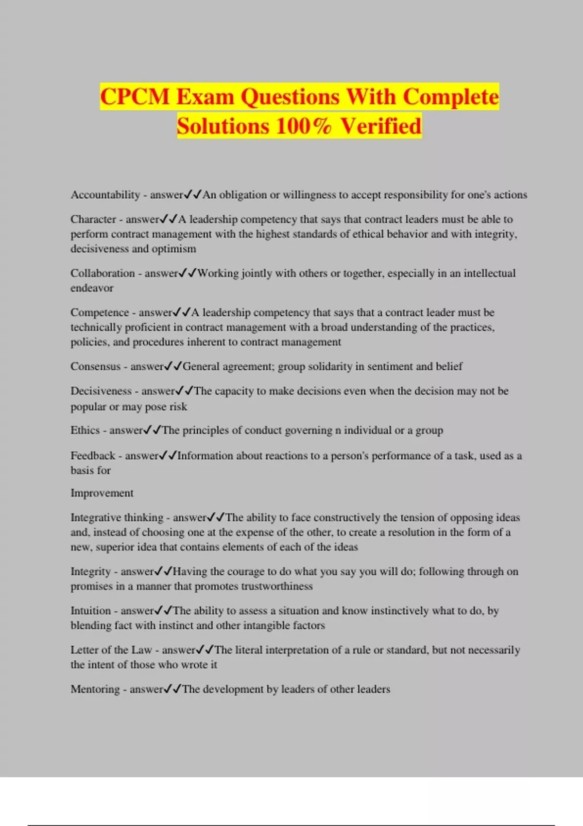 CPCM Exam Questions With Complete Solutions 100% Verified