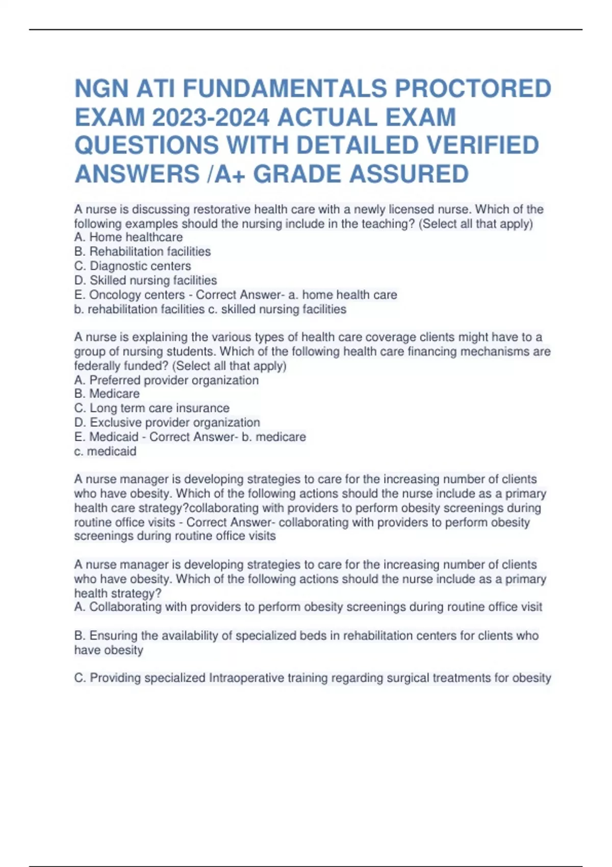 NGN ATI FUNDAMENTALS PROCTORED EXAM ACTUAL EXAM QUESTIONS WITH DETAILED VERIFIED ANSWERS A+ GRADE ASSURED