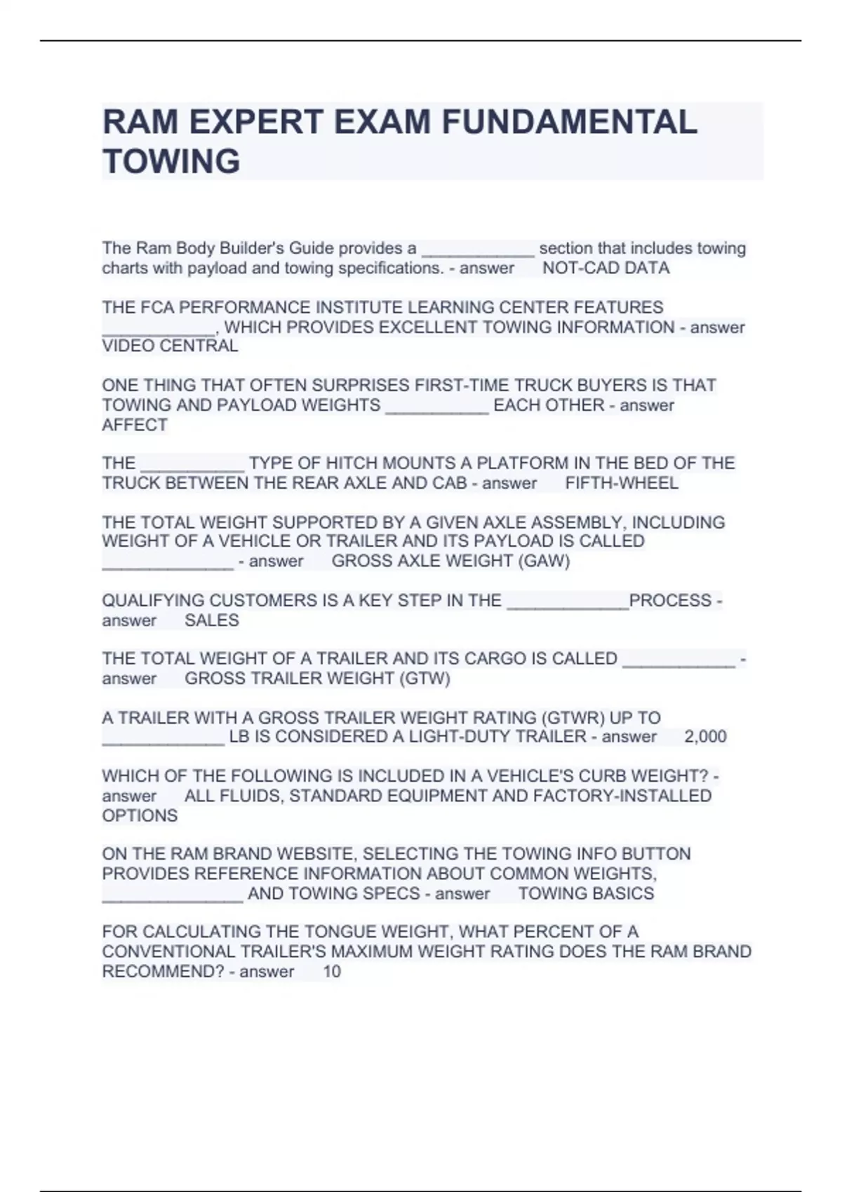 RAM EXPERT EXAM FUNDAMENTAL TOWING