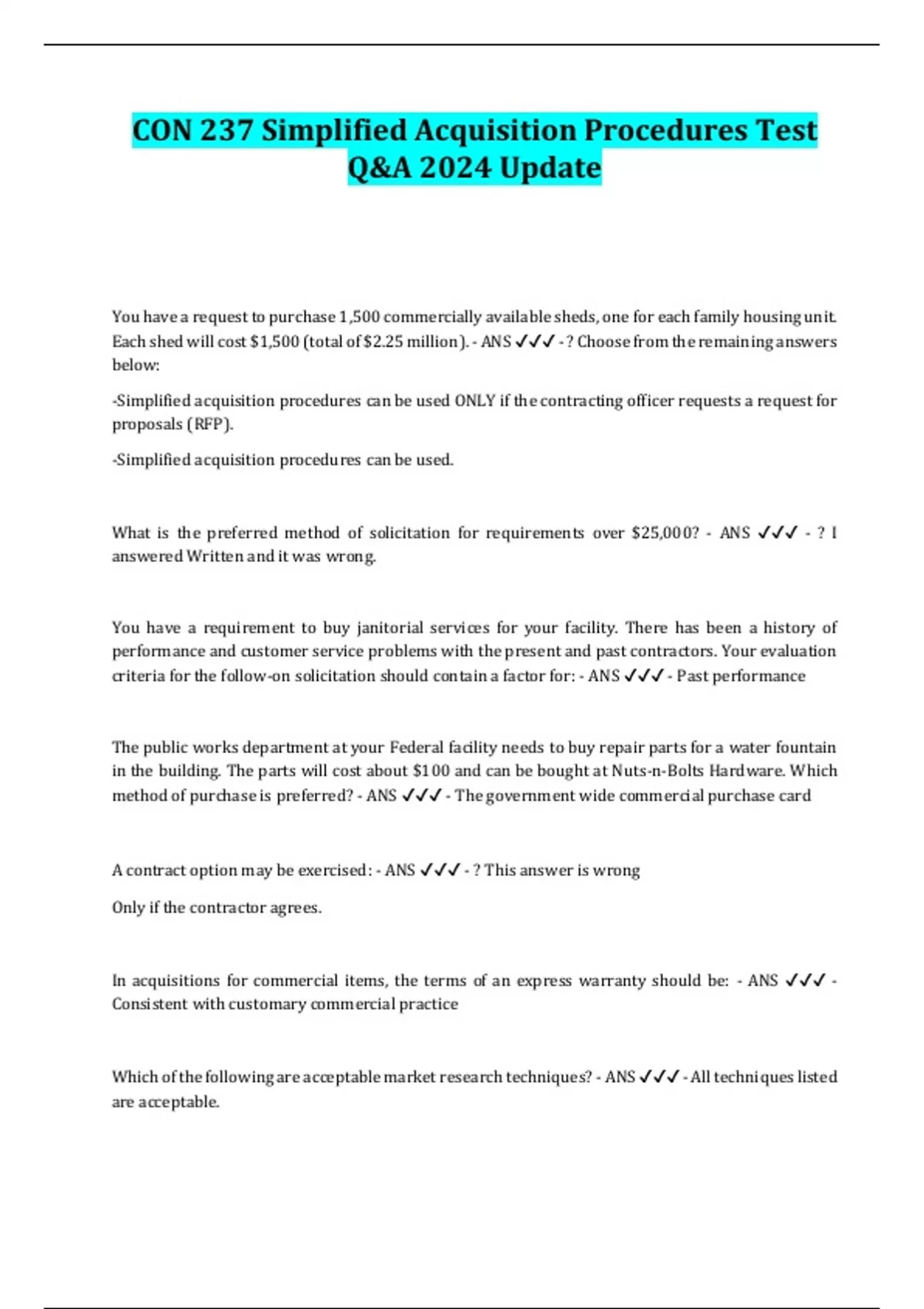 CON 237 Simplified Acquisition Procedures Test Q&A 2024 Update