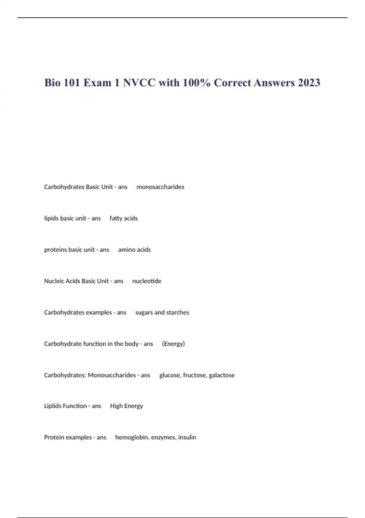Bio 101 Exam 1 NVCC with 100% Correct Answers 2023