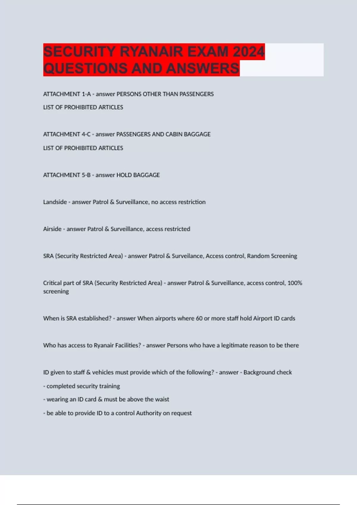 SECURITY RYANAIR EXAM 2024 QUESTIONS AND ANSWERS